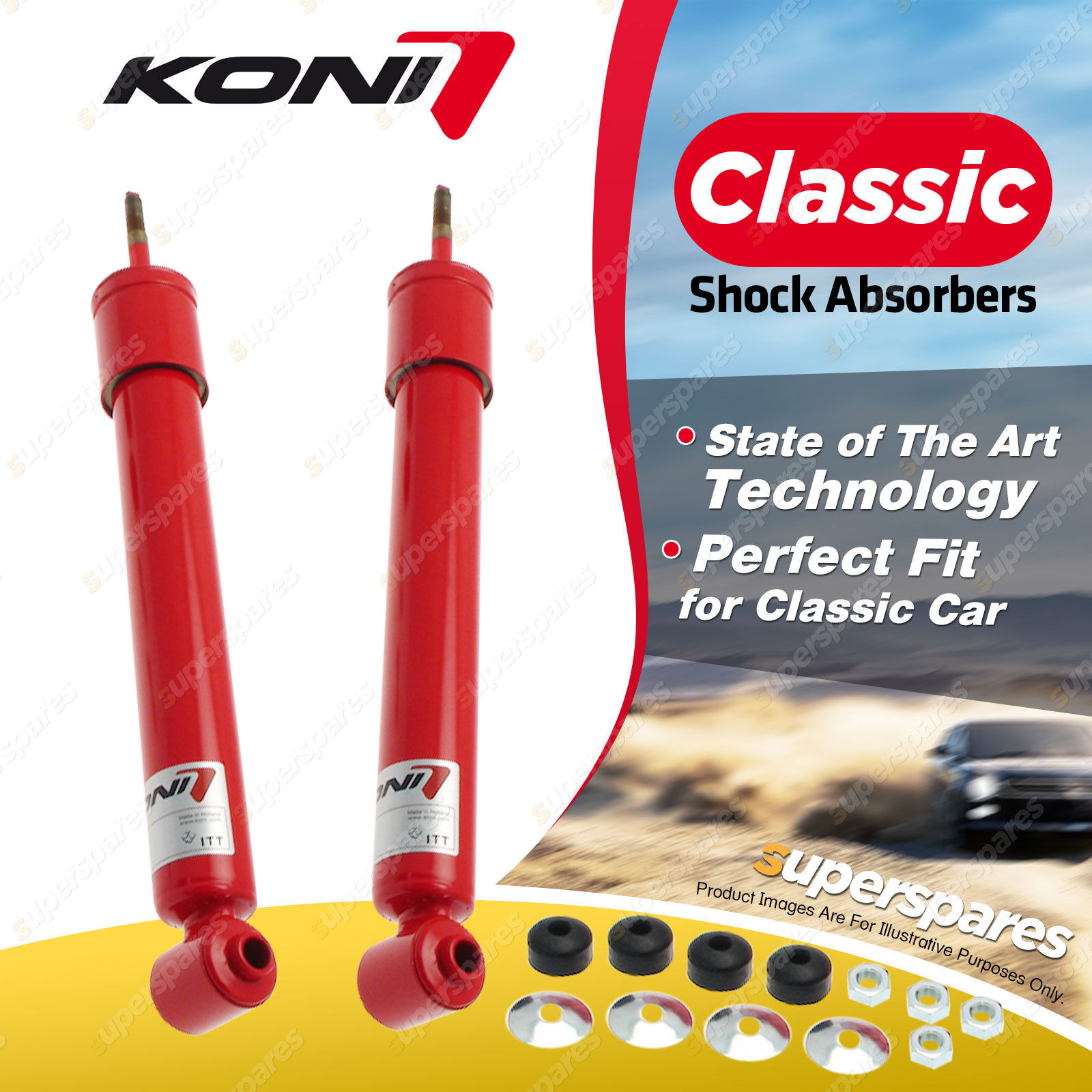 KONI Classic shock absorbers are developed using state of the art technology and are available for many older performance cars. |