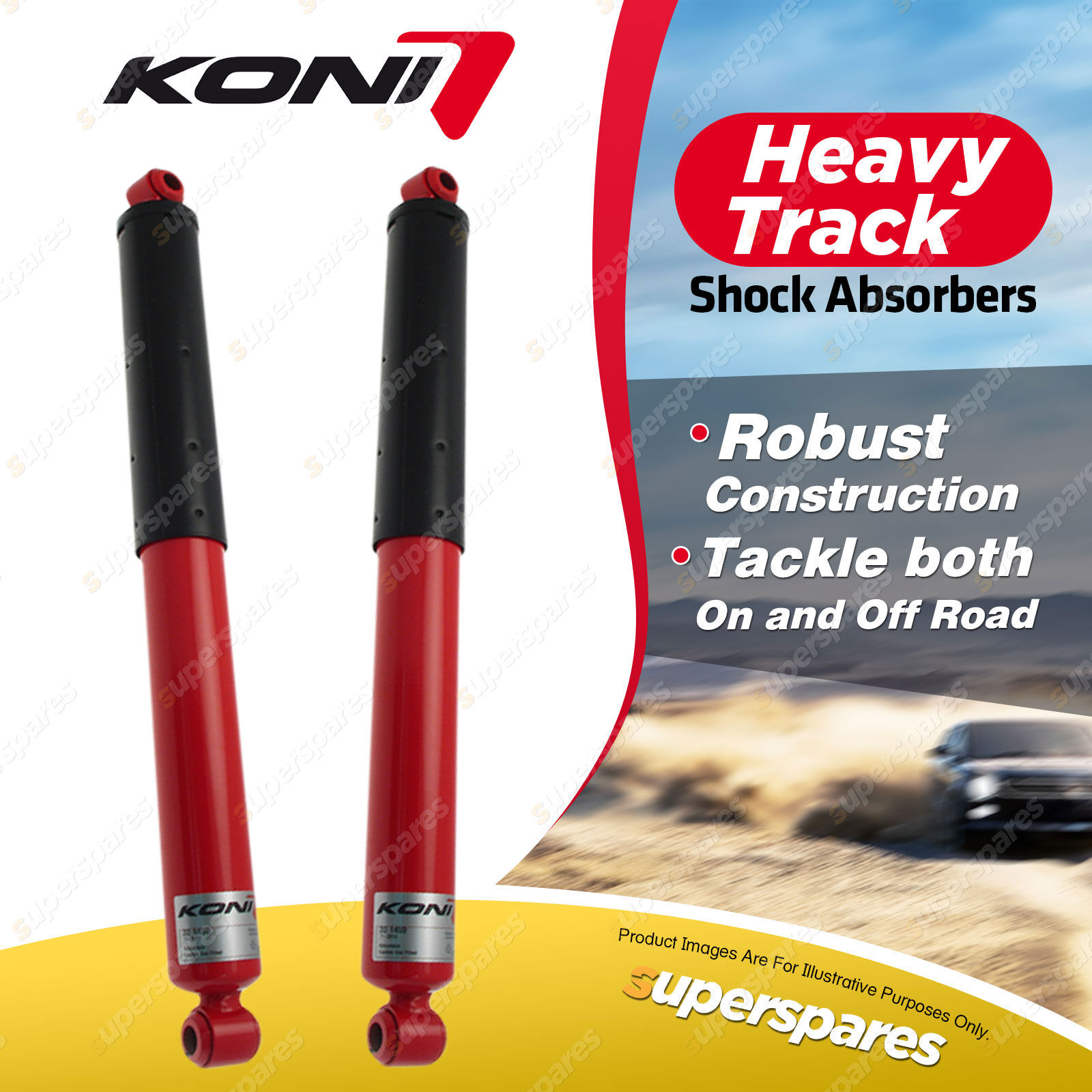 KONI Heavy Track shocks are specially developed for the on-road and off-road challenges of pick-ups, 4x4s, and SUVs. |