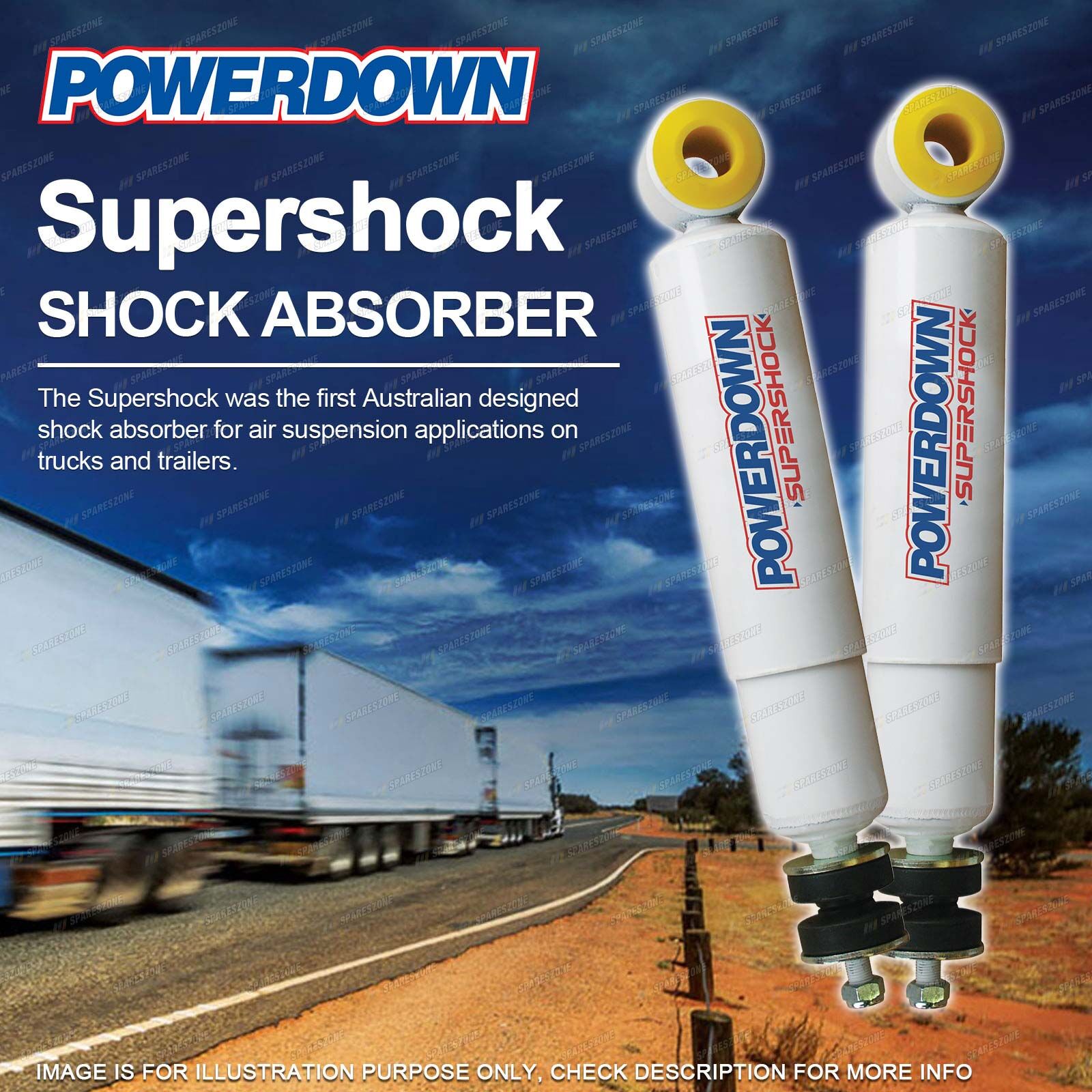 All of our products have been tested exhaustively for Our Roads , Our Loads , Our Conditions Powerdown is the leader in Australian designed suspension solutions for commercial vehicles. Over the past 30 years Powerdown has developed the most comprehensive range of truck, trailer & bus shock absorbers designed specifically for "Excellence in Performance, Safety & Value". |