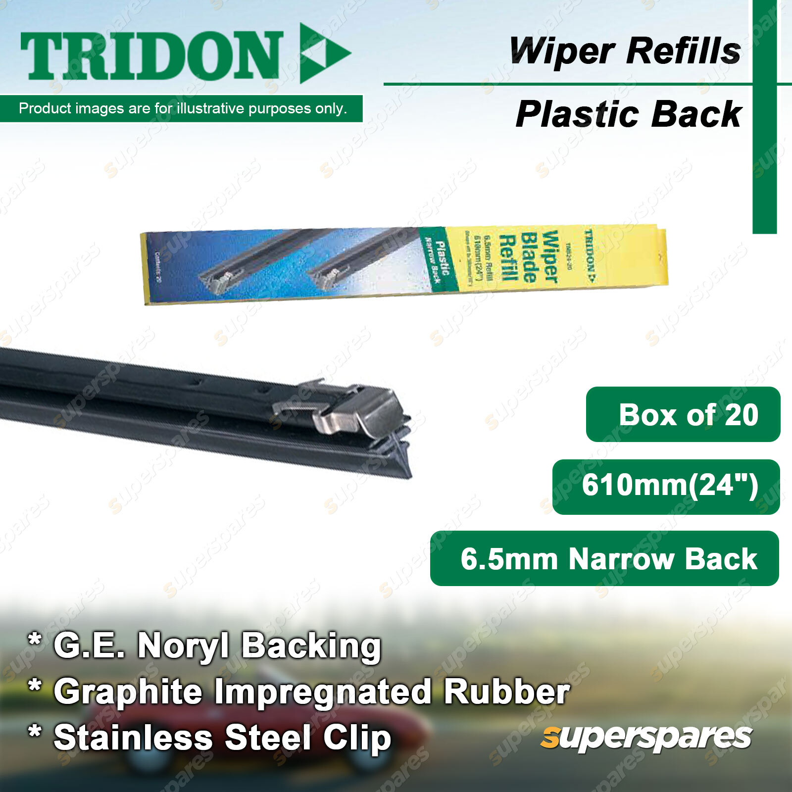 Content : 20 x Tridon Metal Rail Narrow Back Wiper Refills Length : 610mm 24" Width : 6.5mm |