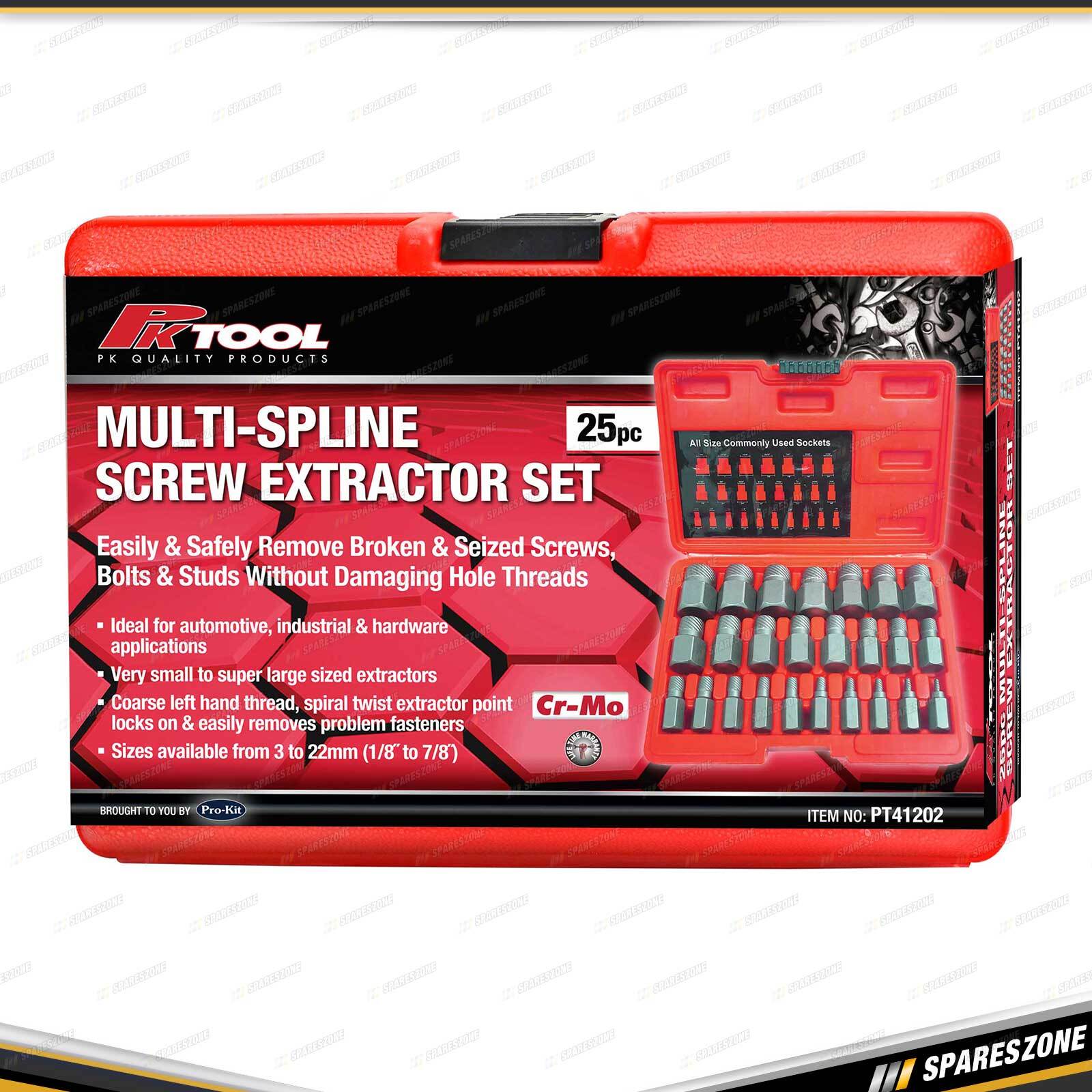 Contents : 25 Pcs of PK Tool Multi-Spline Screw Extractor Set