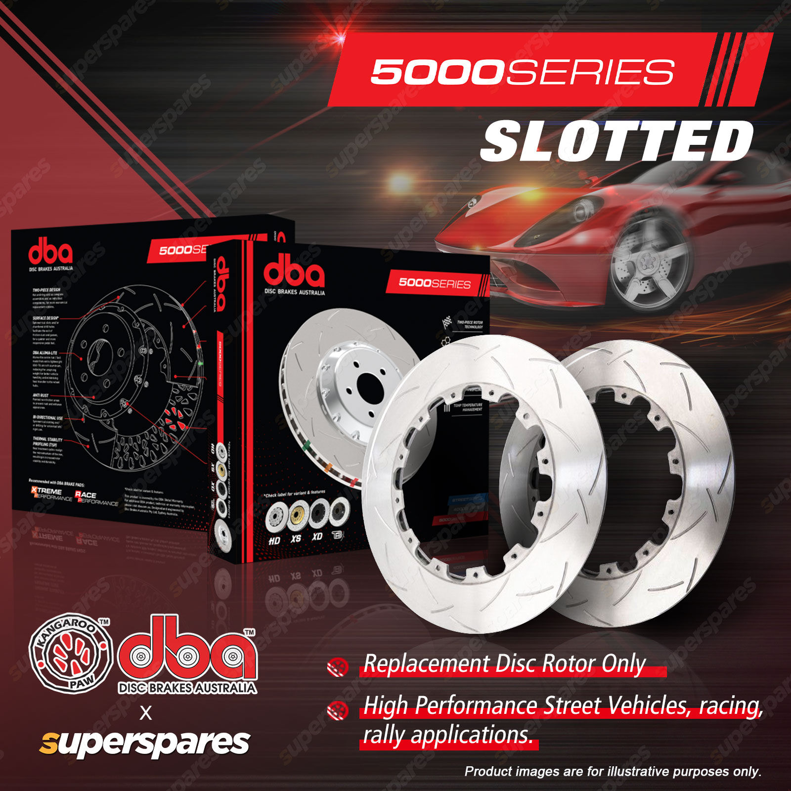 Contents : 2x DBA 5000 Series Slotted Disc Rotors