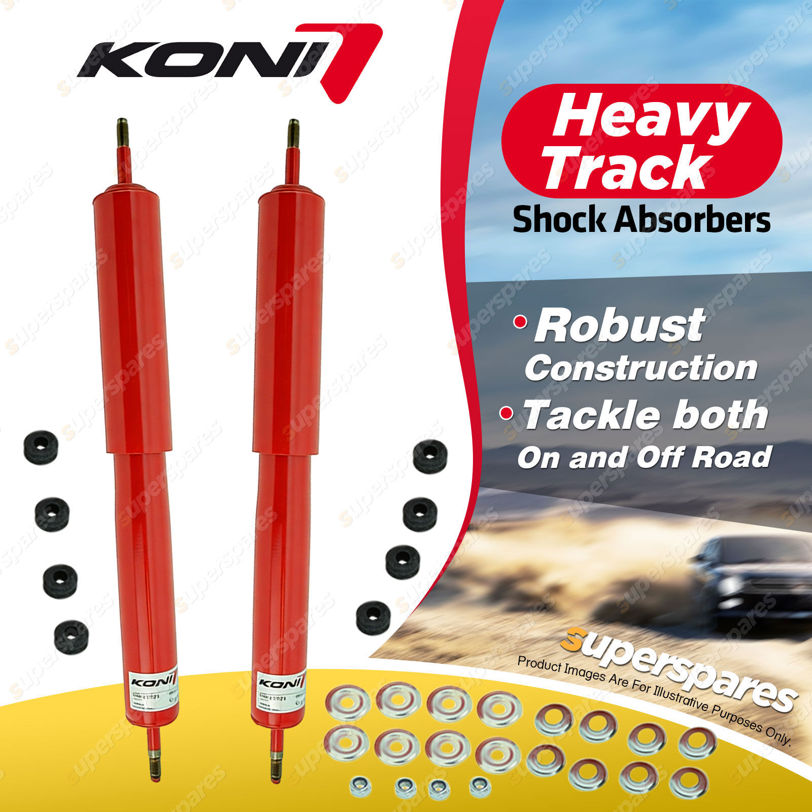 KONI Heavy Track shocks are specially developed for the on-road and off-road challenges of pick-ups, 4x4s, and SUVs. |