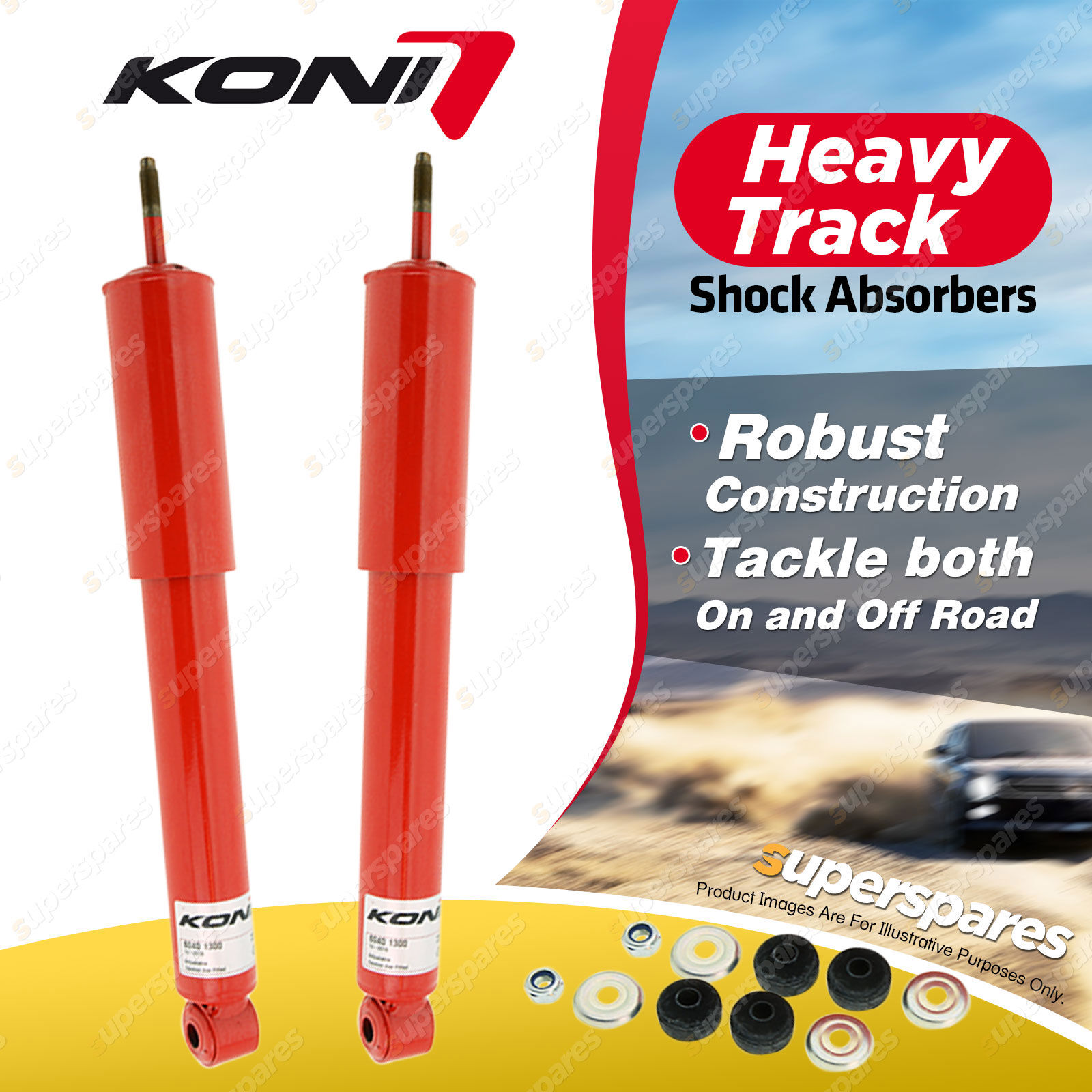 KONI Heavy Track shocks are specially developed for the on-road and off-road challenges of pick-ups, 4x4s, and SUVs. |