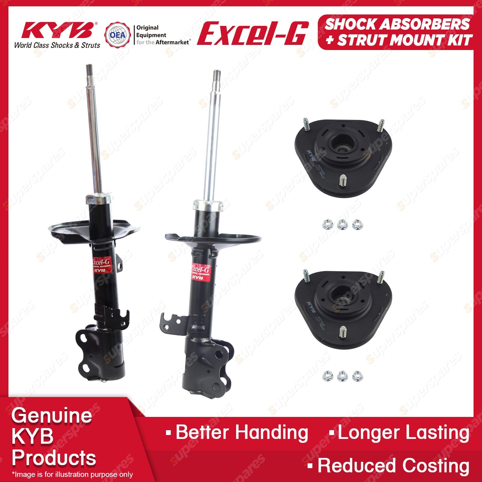 Note: eBay's compatibility table is not accurate in some cases. Please refer to the following information we have provided for you. Copyright © 2014 - 2023 Superspares. All rights reserved. Contents : 2x KYB Front Excel-G Shock Absorbers 2x KYB Front LH & RH Strut & Mounting Kit Suit : Toyota Corolla ZZE122R 1ZZFE 1.8 I4 FWD All Styles 12/2001-04/2007 |