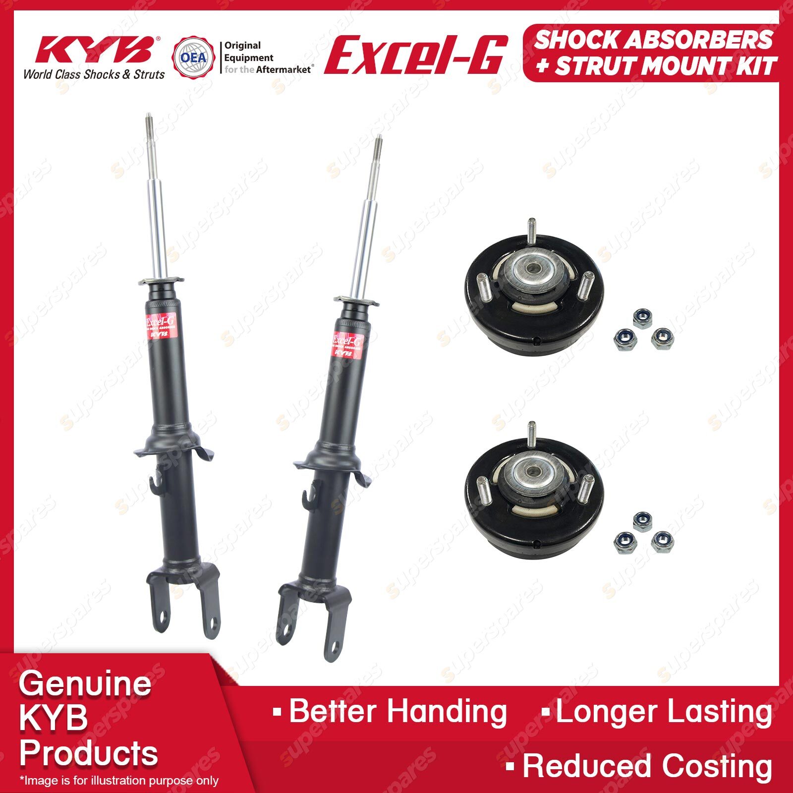 The best choice to replace your MacPherson Strut to ensure comfort and a steady ride. Our patented valving and the use of pressurised nitrogen gas in the Excel-G range will restore riding comfort and, at the same time, dramatically reduce the aeration or foaming that commonly occurs in other shock absorbers. Outstanding features include: * Multi-lip oil seal extends life.