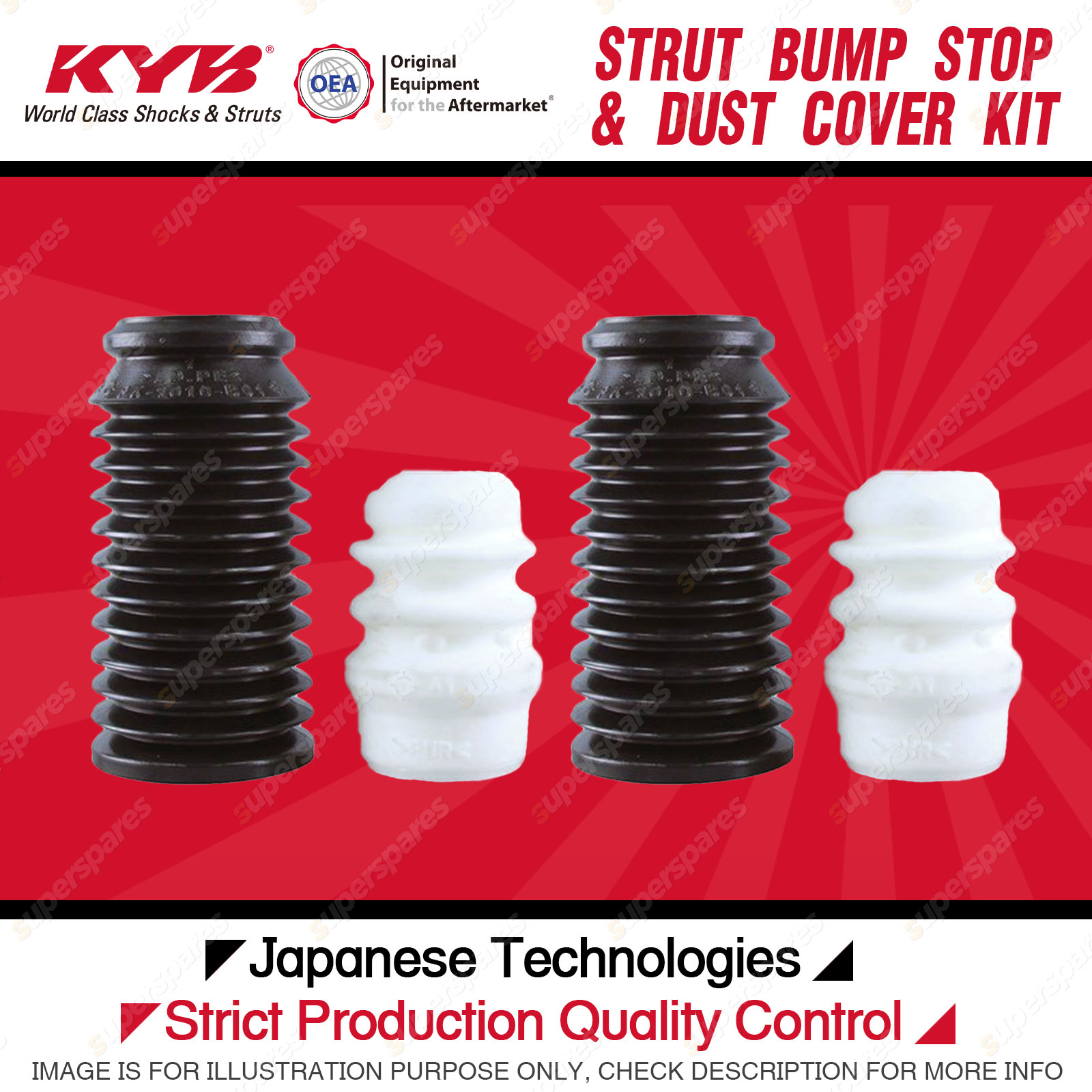 Note: eBay's compatibility table is not accurate in some cases. Please refer to the following information we have provided for you. Copyright © 2014 - 2023 Superspares. All rights reserved. Contents : 2x Front KYB Strut Bump Stops Suit :