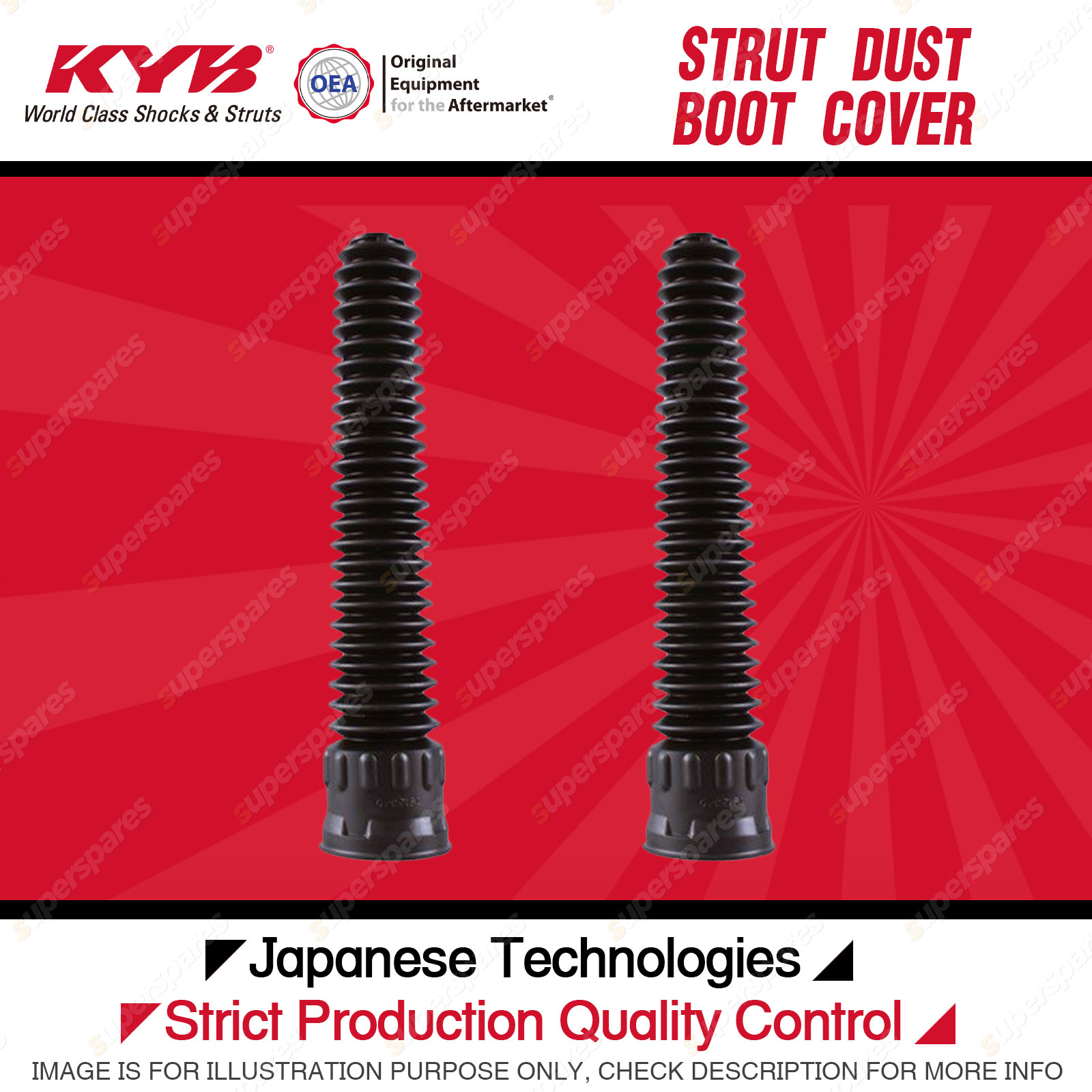 | Note: eBay's compatibility table is not accurate in some cases. Please refer to the following information we have provided for you. Copyright © 2014 - 2023 Superspares. All rights reserved. Contents : 2x Front KYB Strut Dust Boot Covers Suit :
