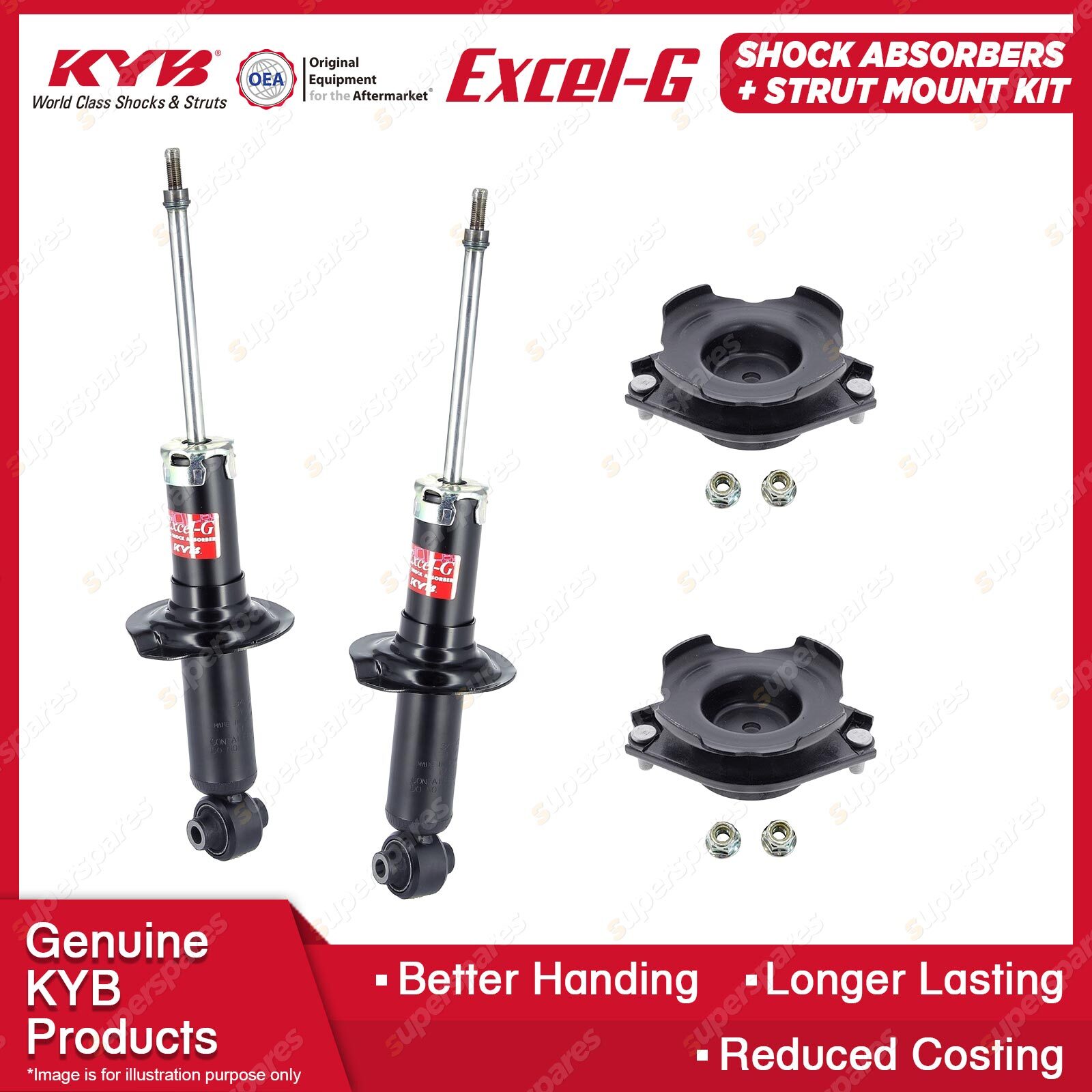 The best choice to replace your MacPherson Strut to ensure comfort and a steady ride. Our patented valving and the use of pressurised nitrogen gas in the Excel-G range will restore riding comfort and, at the same time, dramatically reduce the aeration or foaming that commonly occurs in other shock absorbers. Outstanding features include: * Multi-lip oil seal extends life.