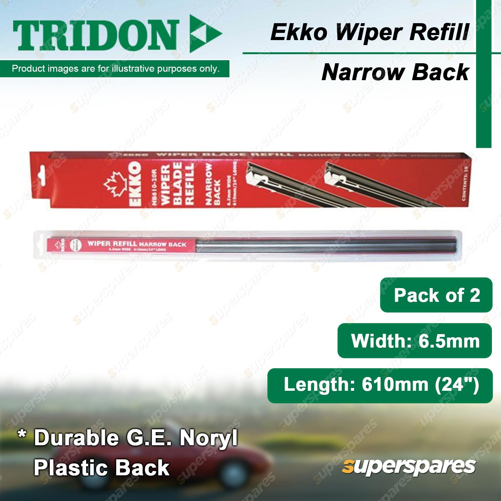 Content : 2 x Tridon Ekko Plastic Narrow Back Wiper Refills Length : 610mm 24" Width : 6.5mm |