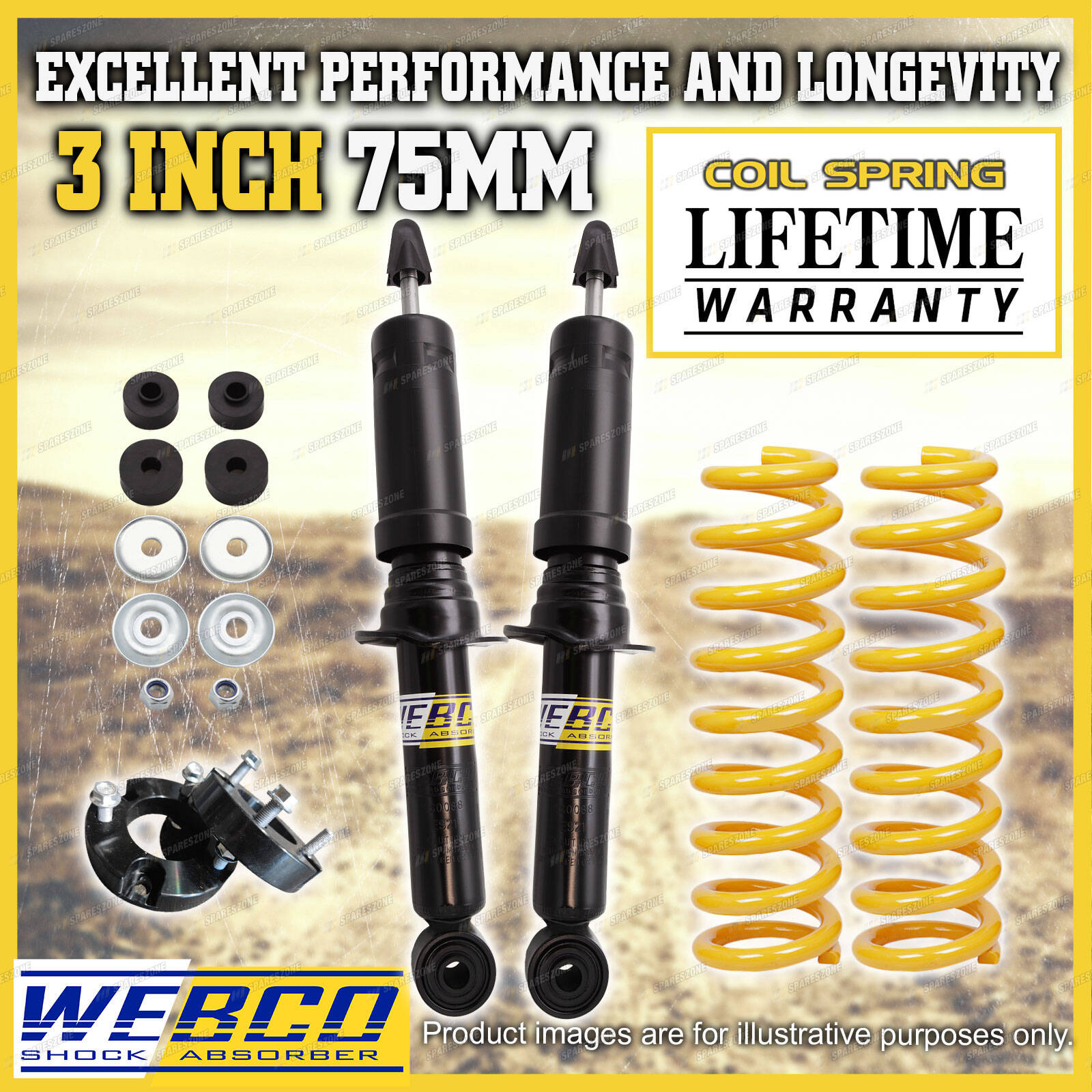 As car enthusiasts ourselves we completely understand the need for only wanting the best top quality aftermarket parts for your vehicle from a reliable and trustworthy source. We have utilised our understanding of this need to develop the best quality lift kits and build strong relationships with out valued customers; here's how... eBay have listed us as a "Top Rated Seller" with a 99.4% Positive feedback rating. We also offer a 30 day change of mind return period with a 100% fitment guarantee to ensure your peace of mind. Spareszone's lift kits offer an immense improvement in suspension performance and comfortability when compared to the standard stock suspension of your vehicle giving our customers a greater driving experience on and off road. |