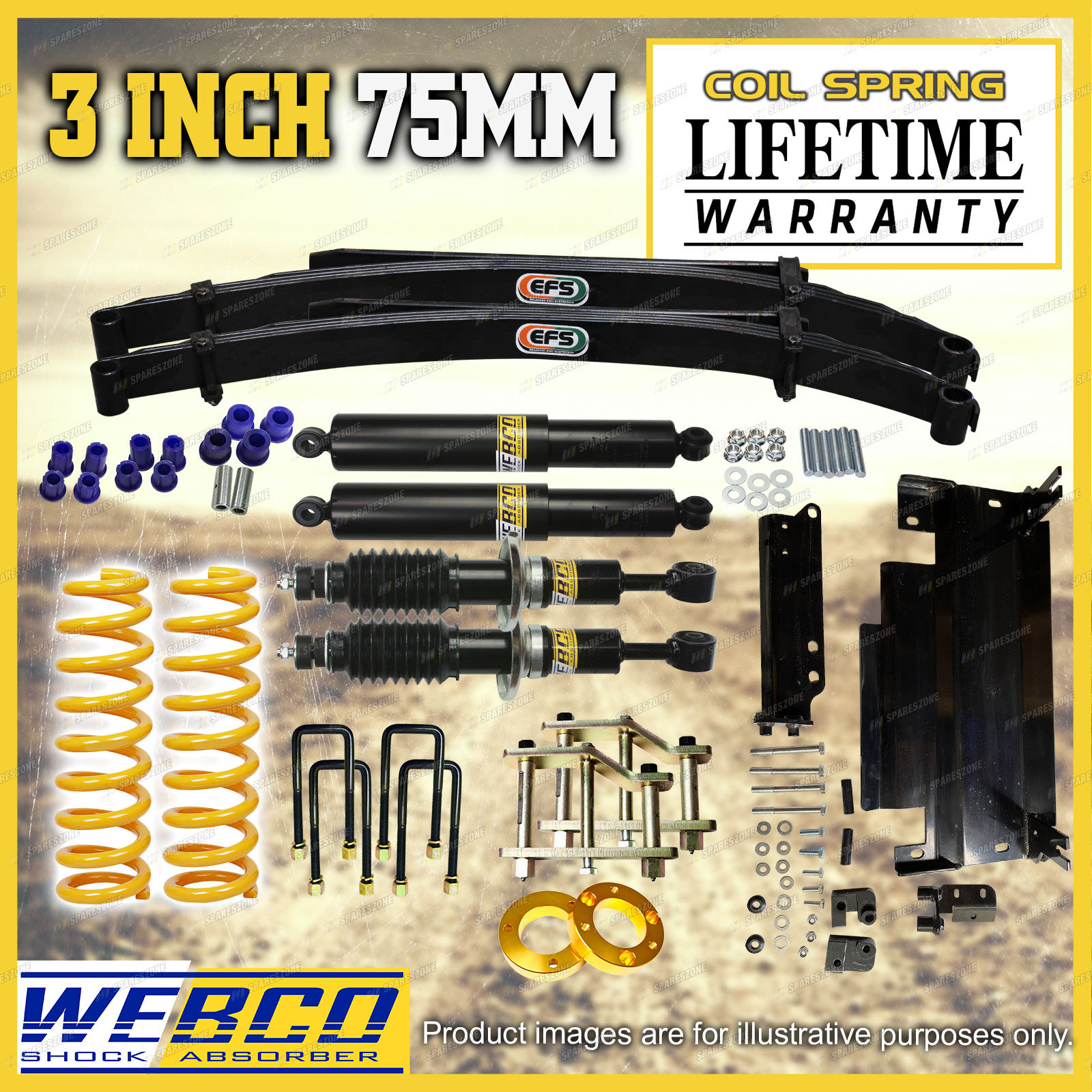 As car enthusiasts ourselves we completely understand the need for only wanting the best top quality aftermarket parts for your vehicle from a reliable and trustworthy source. We have utilised our understanding of this need to develop the best quality lift kits and build strong relationships with out valued customers; here's how... eBay have listed us as a "Top Rated Seller" with a 99.4% Positive feedback rating. We also offer a 30 day change of mind return period with a 100% fitment guarantee to ensure your peace of mind. Spareszone's lift kits offer an immense improvement in suspension performance and comfortability when compared to the standard stock suspension of your vehicle giving our customers a greater driving experience on and off road. |