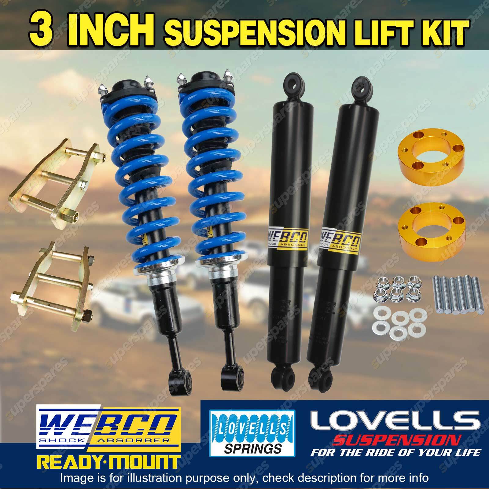 2 x Front 3 Inch 75mm Lift Webco Big Bore Complete Strut / Pre Assembled With Strut Spacers & Lovells Medium Load Coil Springs (0-100kg Constant Load)