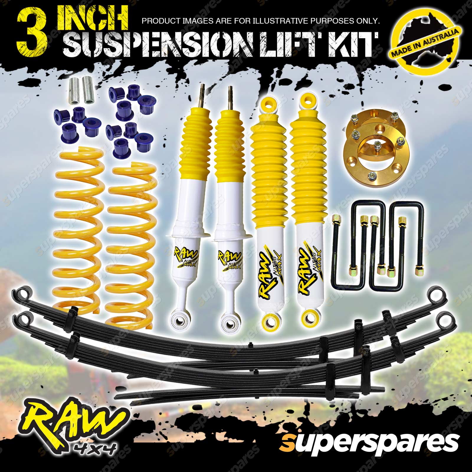 | Front | Raw 4x4 Nitro Max Shock Absorber | 2 | 45mm Bore Nitrogen Gas Cell Technology |