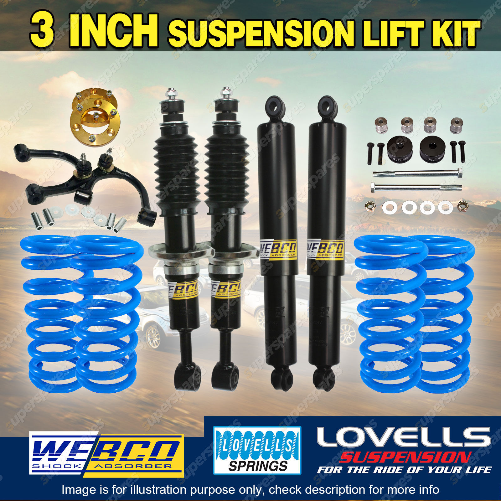 As passionate car owners ourselves we absolutely understand the necessity to be well informed before purchasing aftermarket parts for your beloved vehicles. We can guarantee that our lift kits offer the best possible value and quality possible on the market and outstanding service here's why... We are an eBay Top Rated Seller with over 20,000 positive reviews and offer a range of delivery options with a 30 Day change of mind return policy. Our lift kit packages that are selected and tested by our 4WD specialists to provide the perfect combination of parts for the ultimate comfort and performance. Our Aftermarket Lift Kits offer drastic enhancements from genuine OEM parts. |