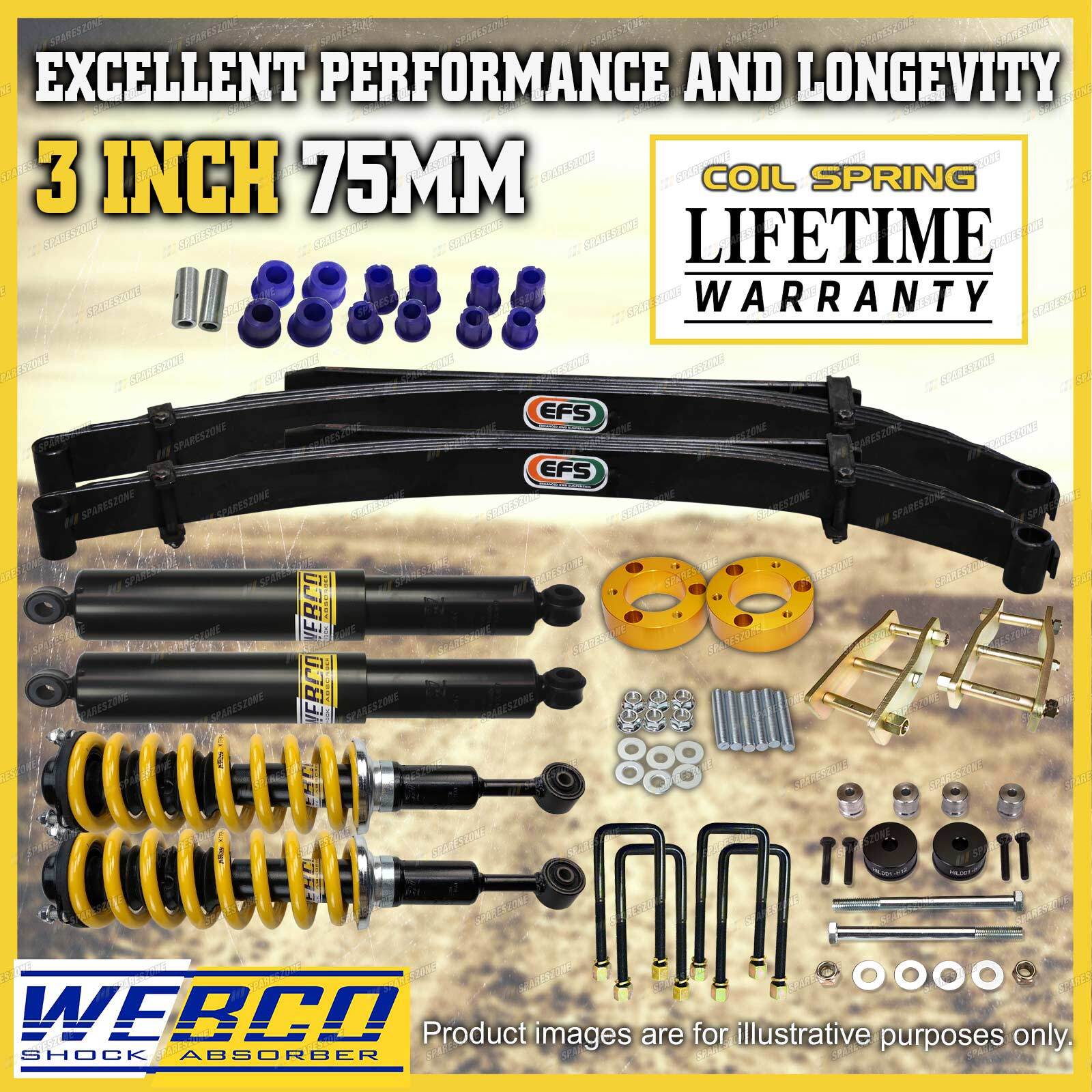 2 x Front 3 Inch 75mm Lift Webco Big Bore Complete Strut / Pre Assembled With Strut Spacers & King Coil Spring (With Bull Bar Or Winch 50-100KG)