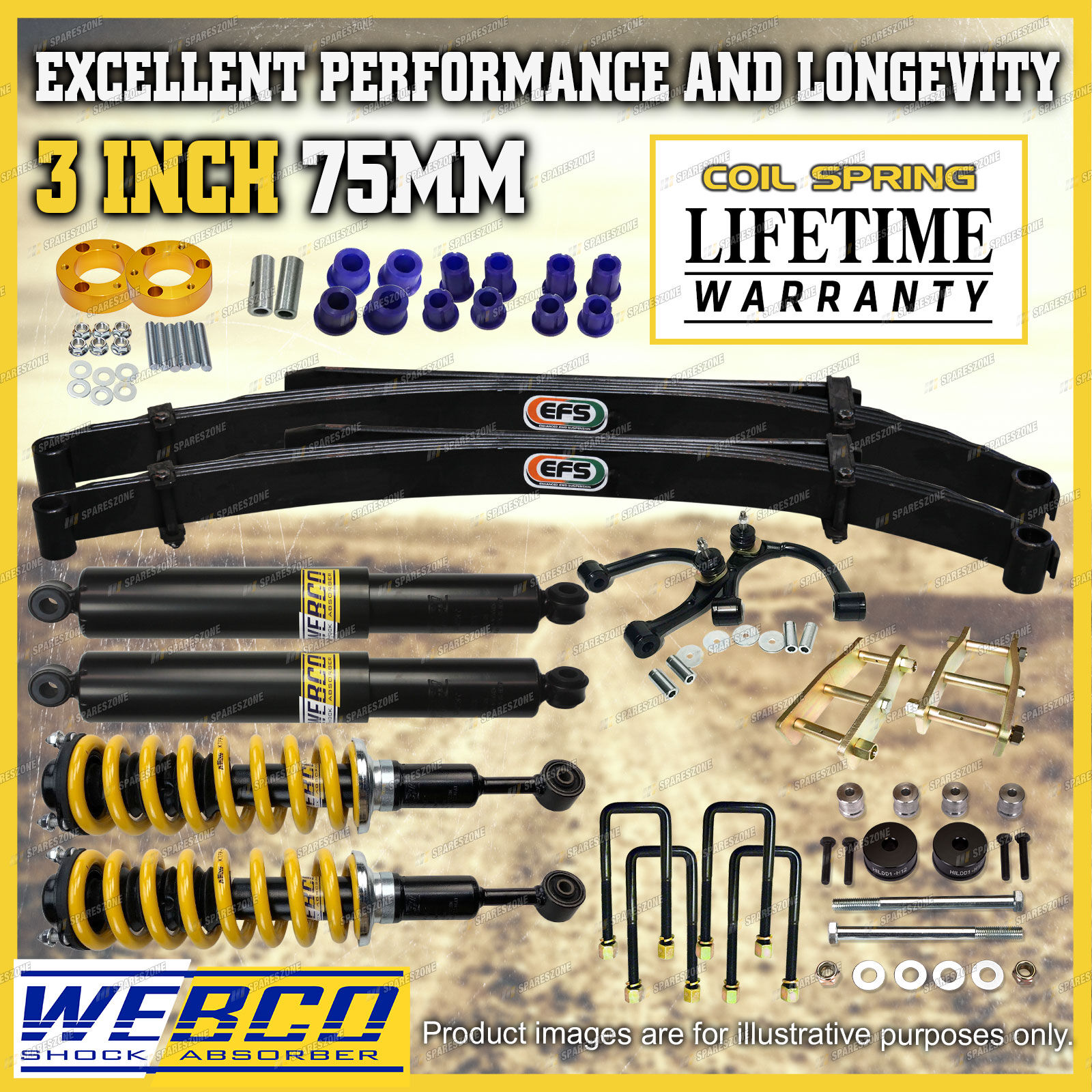 As car enthusiasts ourselves we completely understand the need for only wanting the best top quality aftermarket parts for your vehicle from a reliable and trustworthy source. We have utilised our understanding of this need to develop the best quality lift kits and build strong relationships with out valued customers; here's how... eBay have listed us as a "Top Rated Seller" with a 99.4% Positive feedback rating. We also offer a 30 day change of mind return period with a 100% fitment guarantee to ensure your peace of mind. Spareszone's lift kits offer an immense improvement in suspension performance and comfortability when compared to the standard stock suspension of your vehicle giving our customers a greater driving experience on and off road. |