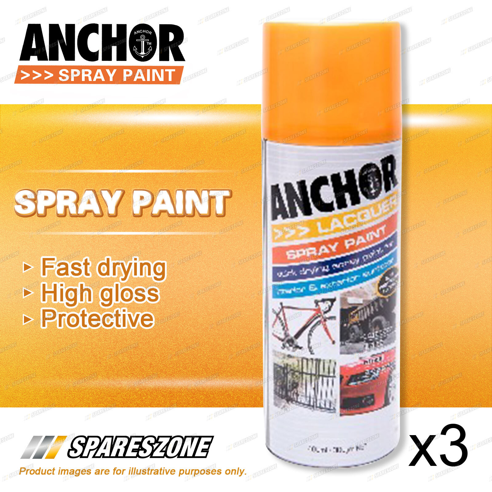 Contents : 3 x Anchor Orange Lacquer Spray Paint