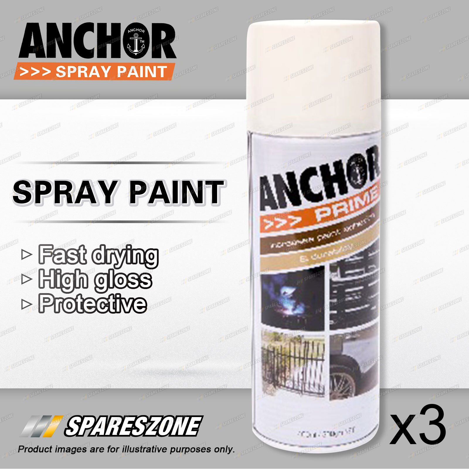 Contents : 3 x Anchor Primer White Lacquer Spray Paint