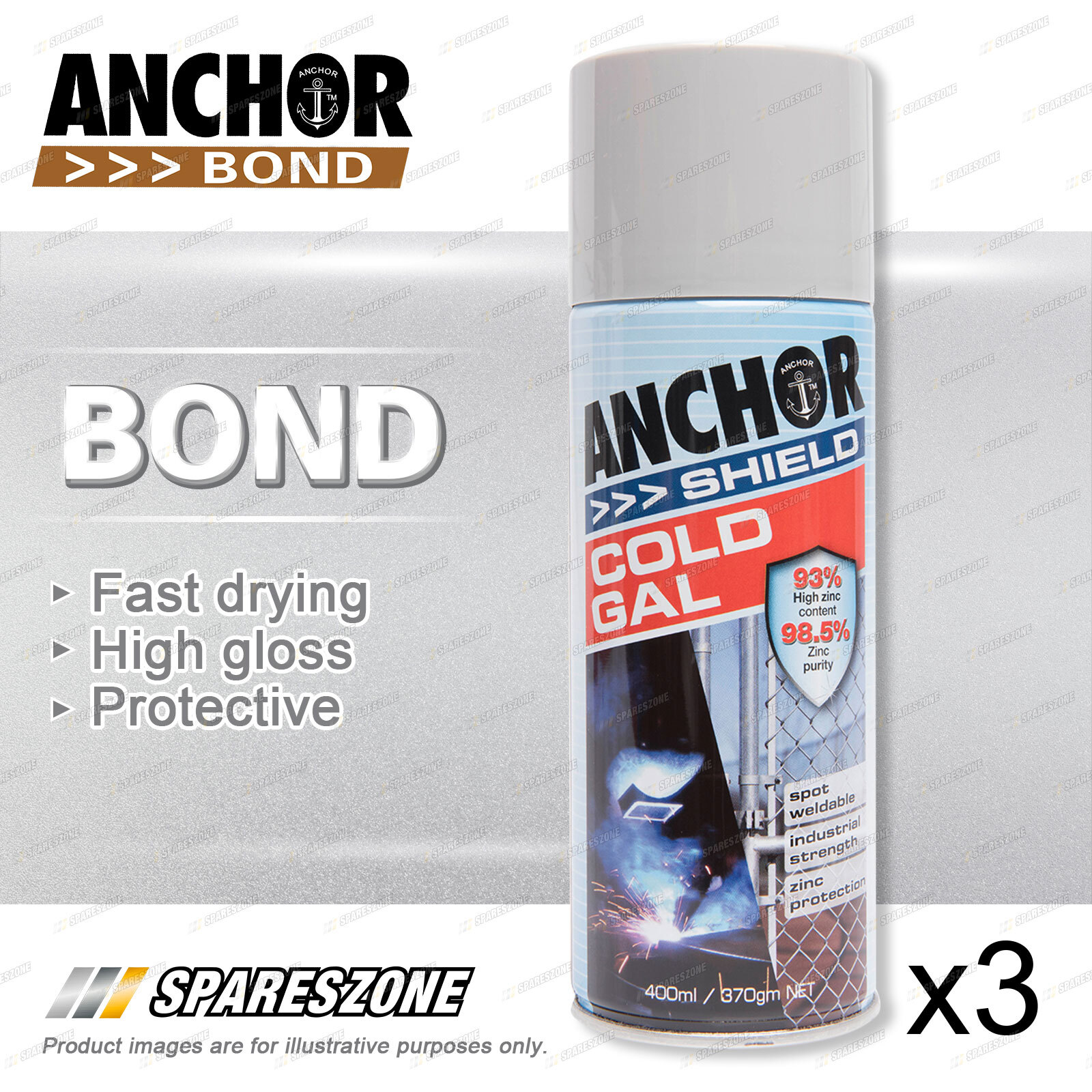 Contents : 3 x Anchor Shield Cold Galvanising Paint