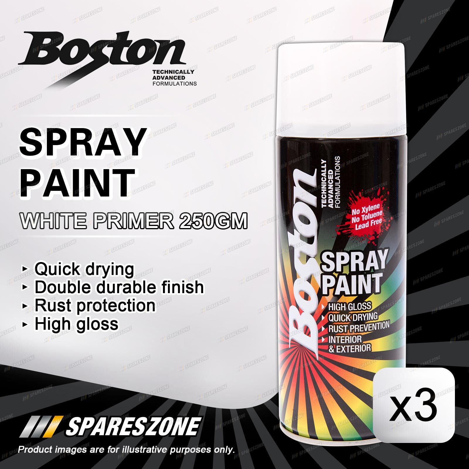 Contents : 3 x Boston White Primer Spray Paint Cans