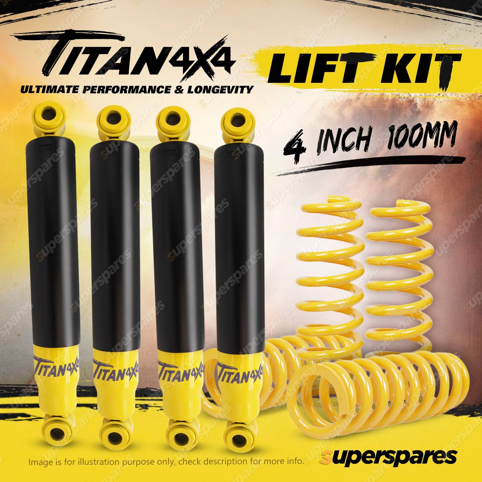 2 x Front Titan 4X4 4 Inch 100mm Lift Shock Absorbers