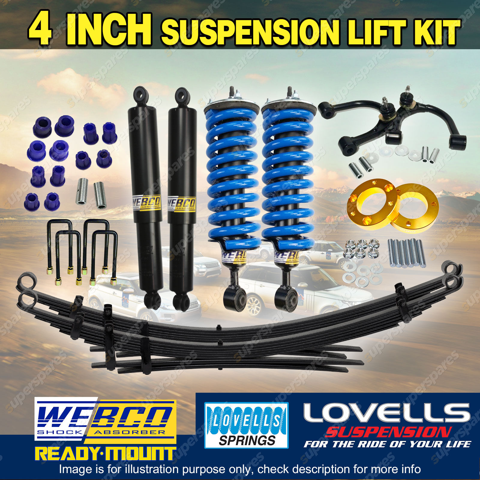 As passionate car owners ourselves we absolutely understand the necessity to be well informed before purchasing aftermarket parts for your beloved vehicles. We can guarantee that our lift kits offer the best possible value and quality possible on the market and outstanding service here's why... We are an eBay Top Rated Seller with over 20,000 positive reviews and offer a range of delivery options with a 30 Day change of mind return policy. Our lift kit packages that are selected and tested by our 4WD specialists to provide the perfect combination of parts for the ultimate comfort and performance. Our Aftermarket Lift Kits offer drastic enhancements from genuine OEM parts. |
