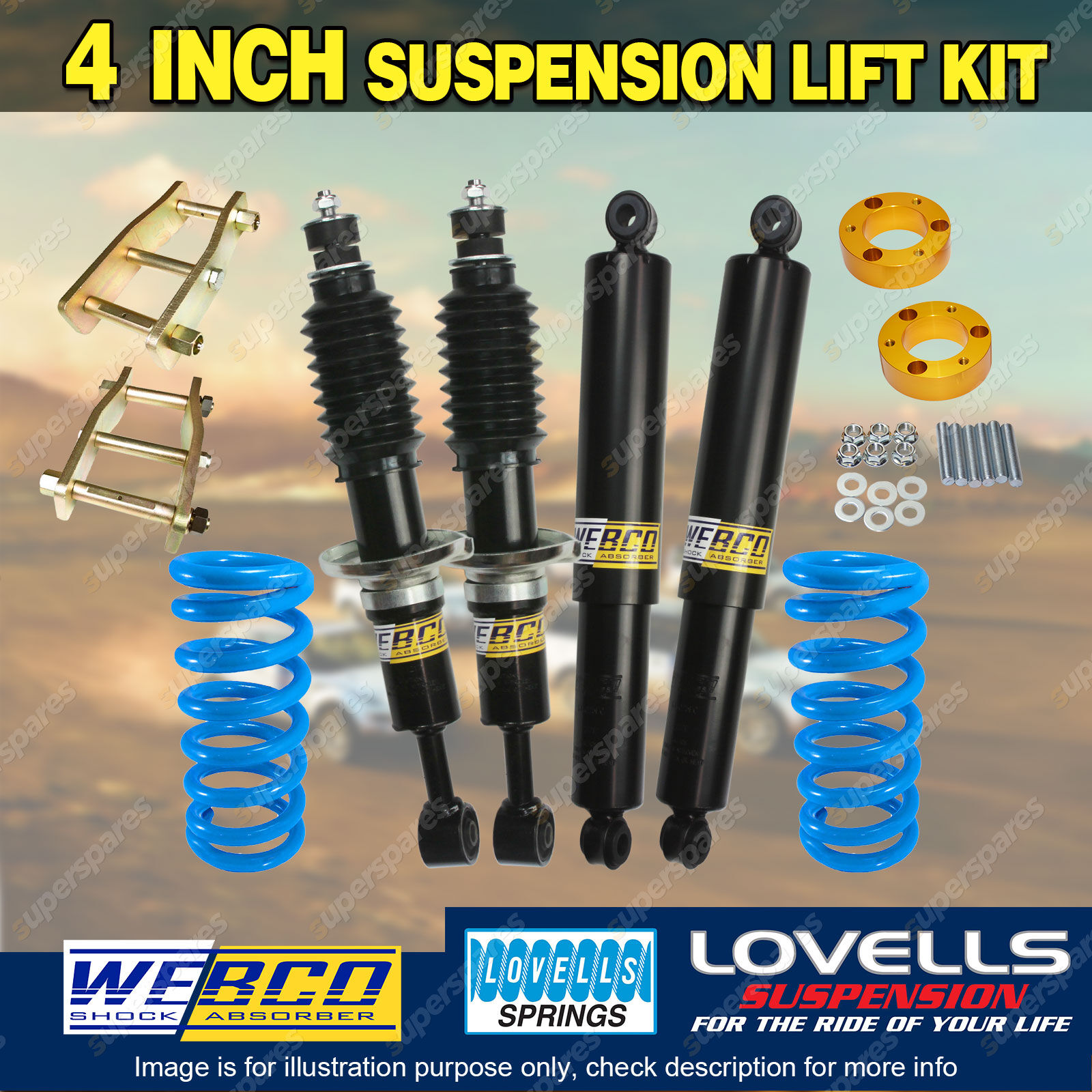 As passionate car owners ourselves we absolutely understand the necessity to be well informed before purchasing aftermarket parts for your beloved vehicles. We can guarantee that our lift kits offer the best possible value and quality possible on the market and outstanding service here's why... We are an eBay Top Rated Seller with over 20,000 positive reviews and offer a range of delivery options with a 30 Day change of mind return policy. Our lift kit packages that are selected and tested by our 4WD specialists to provide the perfect combination of parts for the ultimate comfort and performance. Our Aftermarket Lift Kits offer drastic enhancements from genuine OEM parts. |