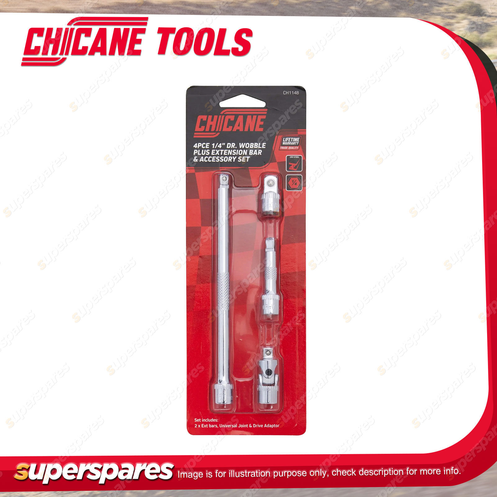 Contents : 4 Pcs of Chicane 1/4" Drive Wobble Plus Extension Bar & Accessory Set