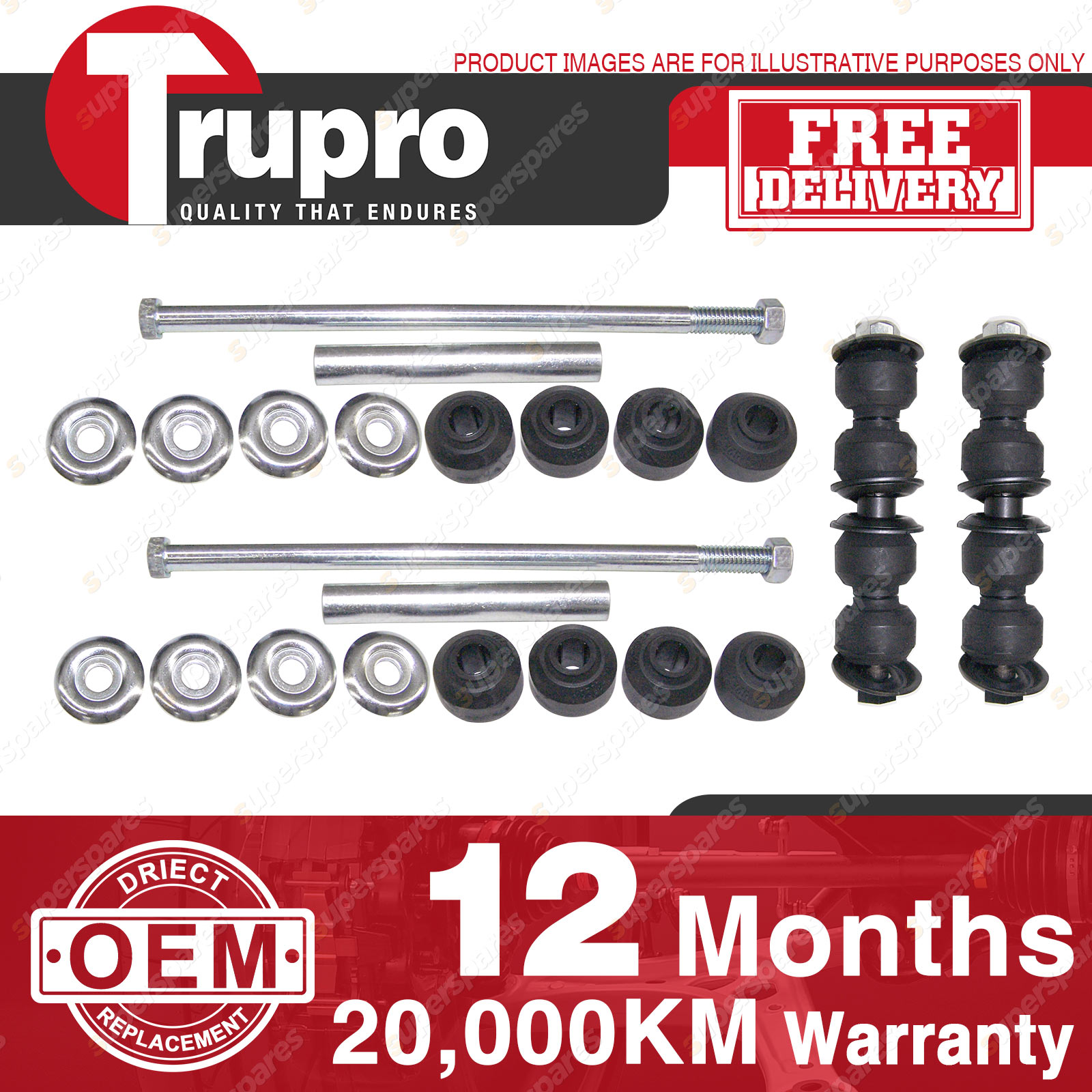 4 Pcs Trupro Front+Rear Sway Bar Links