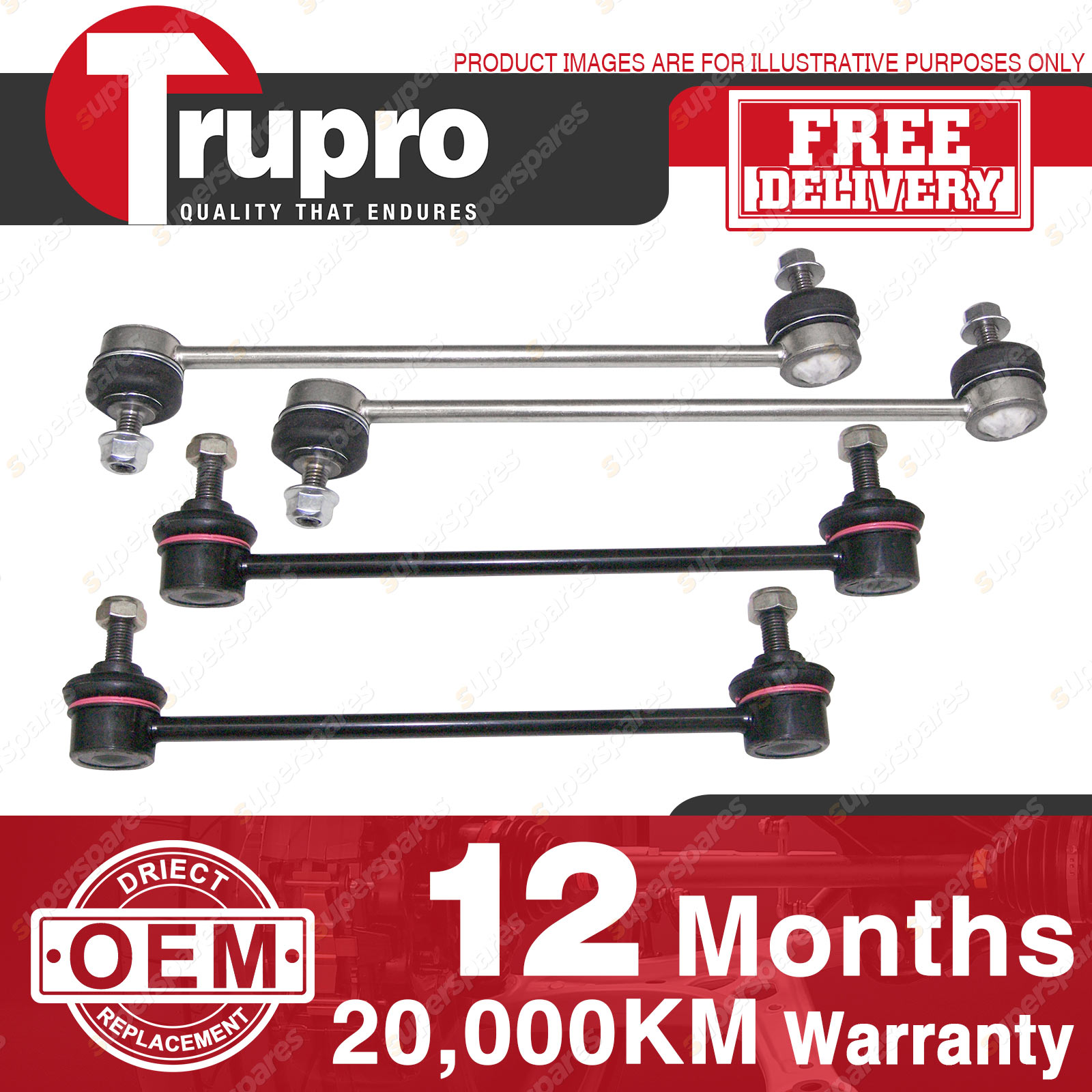4 Pcs Trupro Front+Rear Sway Bar Links