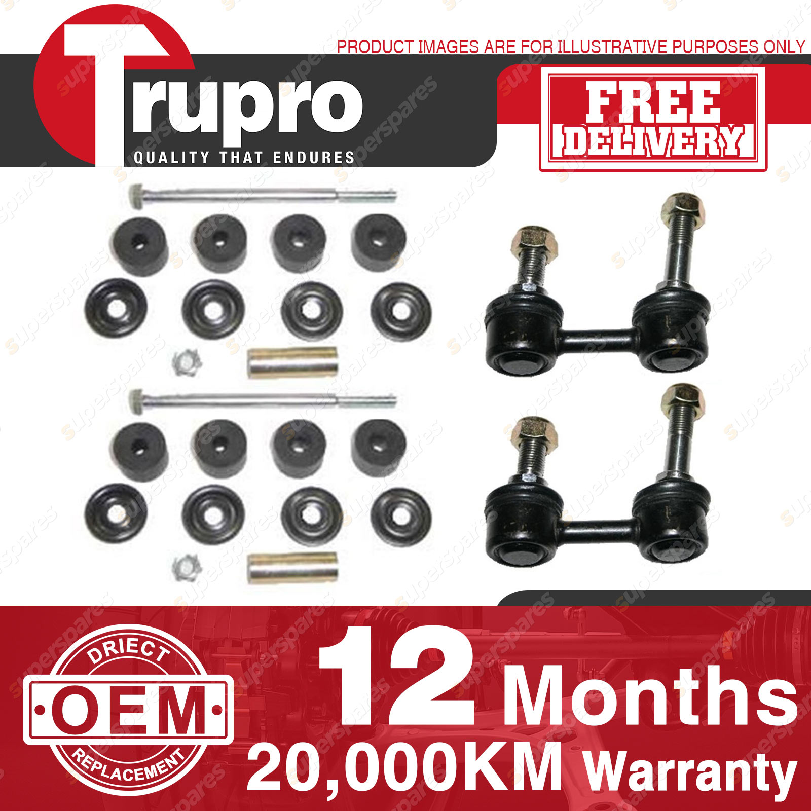 4 Pcs Trupro Front+Rear Sway Bar Links