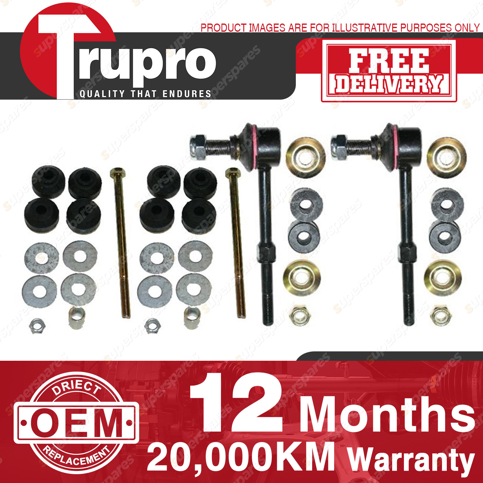 4 Pcs Trupro Front+Rear Sway Bar Links