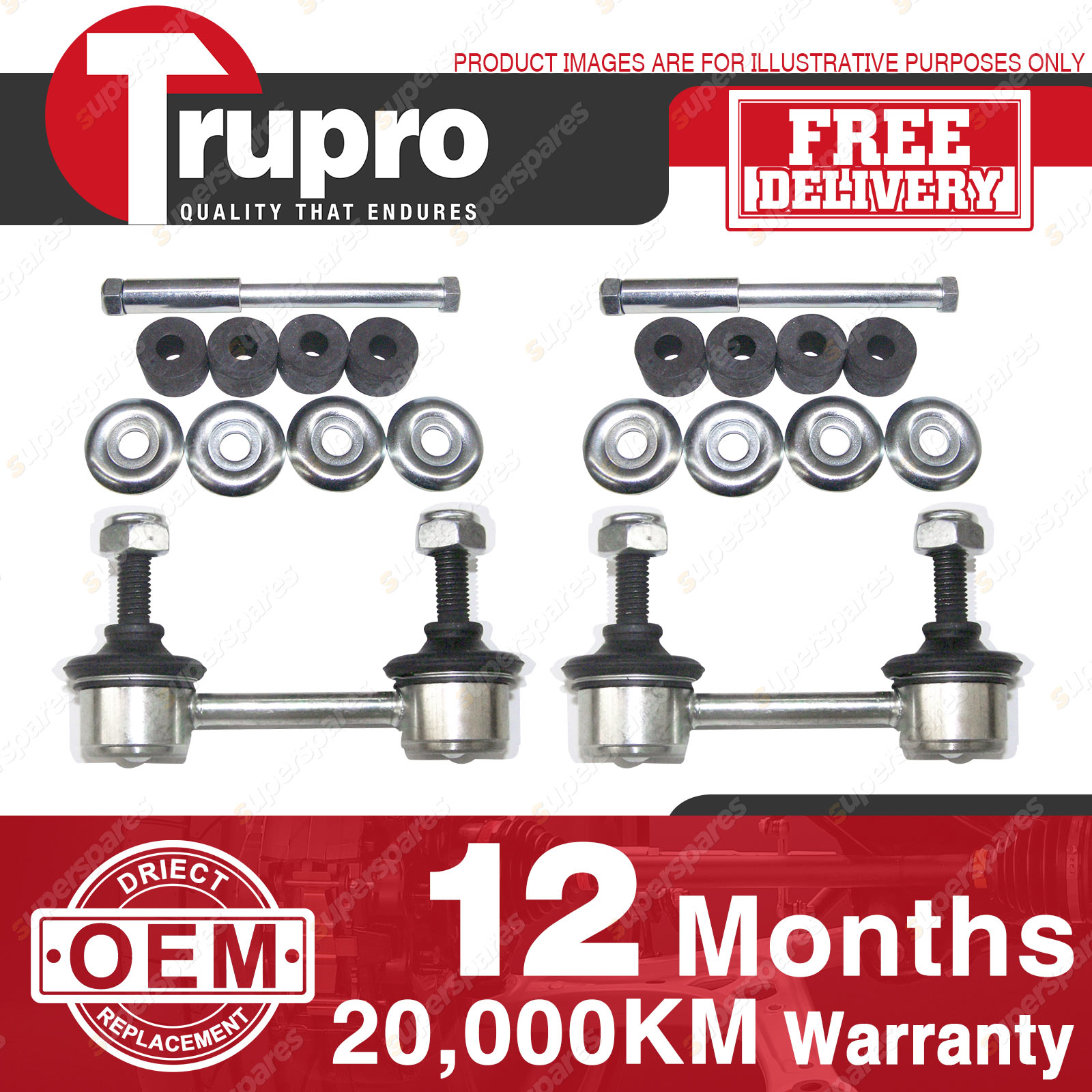4 Pcs Trupro Front+Rear Sway Bar Links