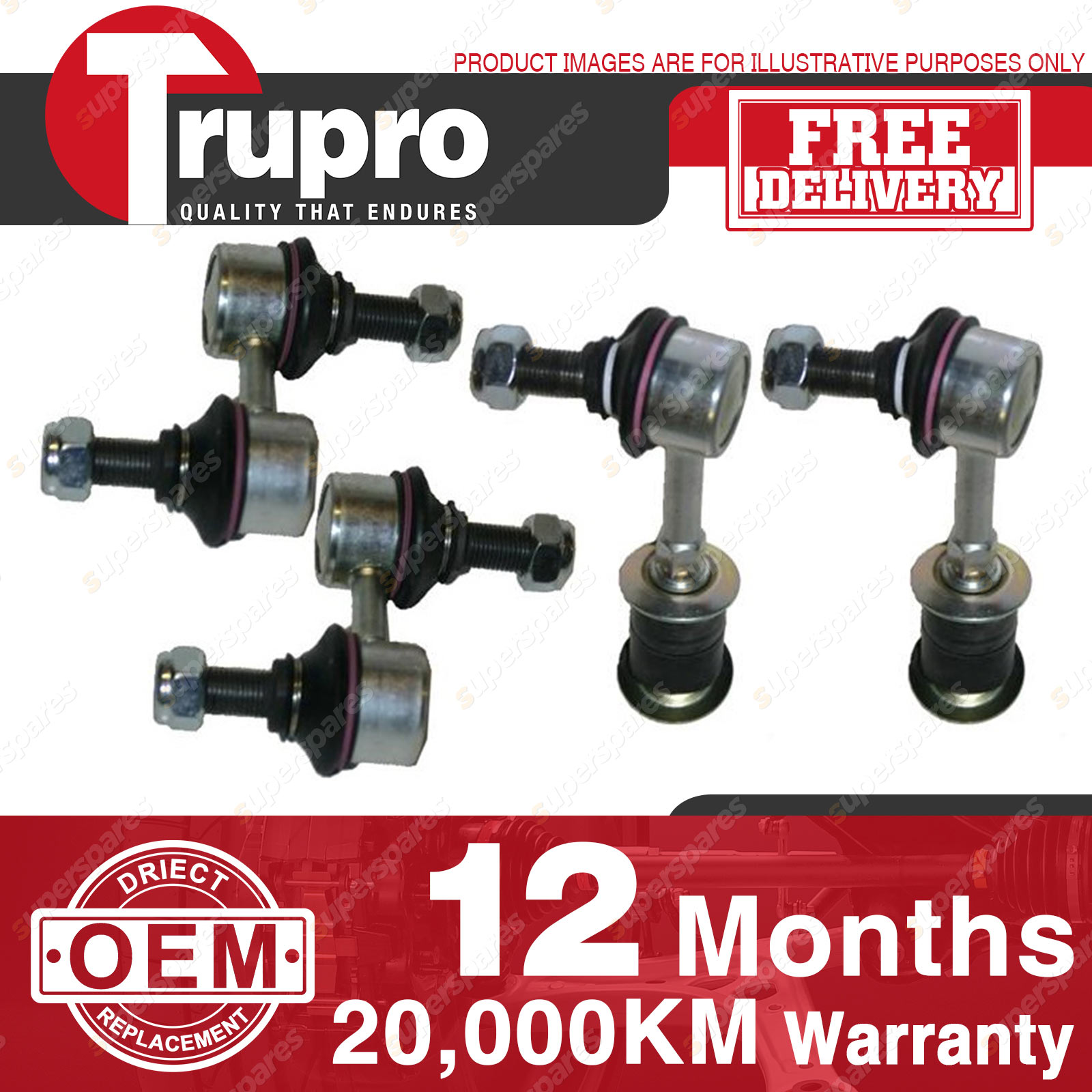 4 Pcs Trupro Front+Rear Sway Bar Links