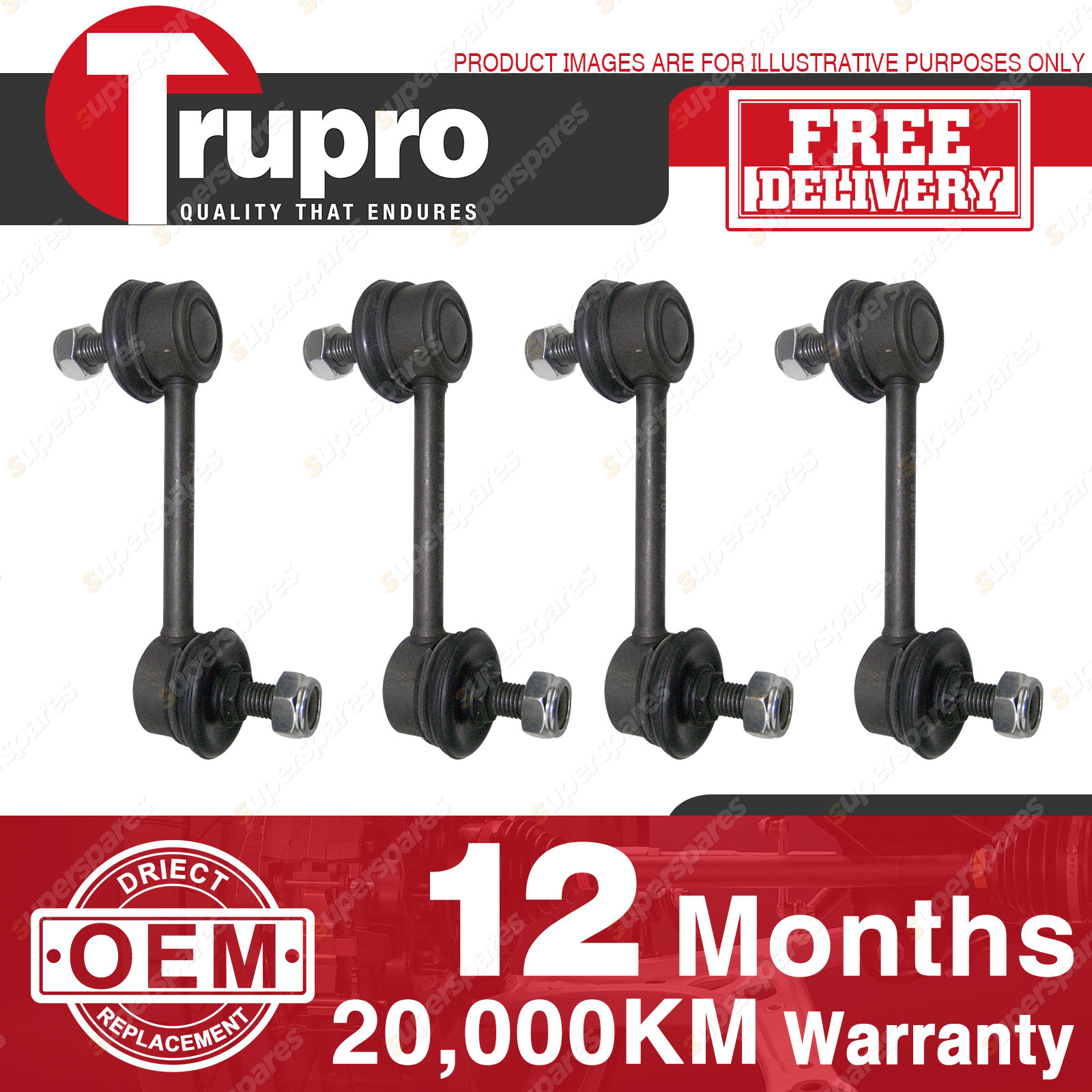 4 Pcs Trupro Front+Rear Sway Bar Links