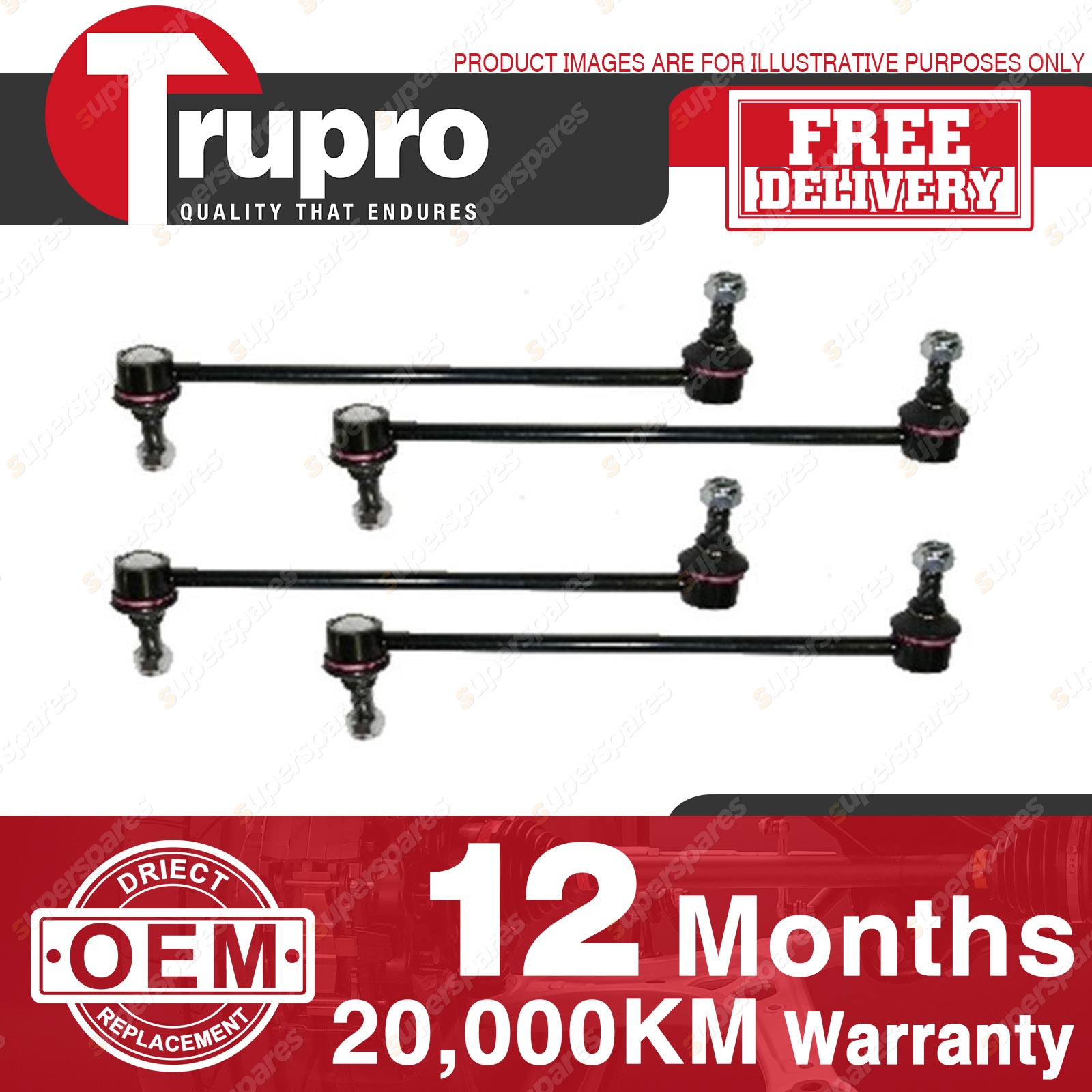 4 Pcs Trupro Front+Rear Sway Bar Links