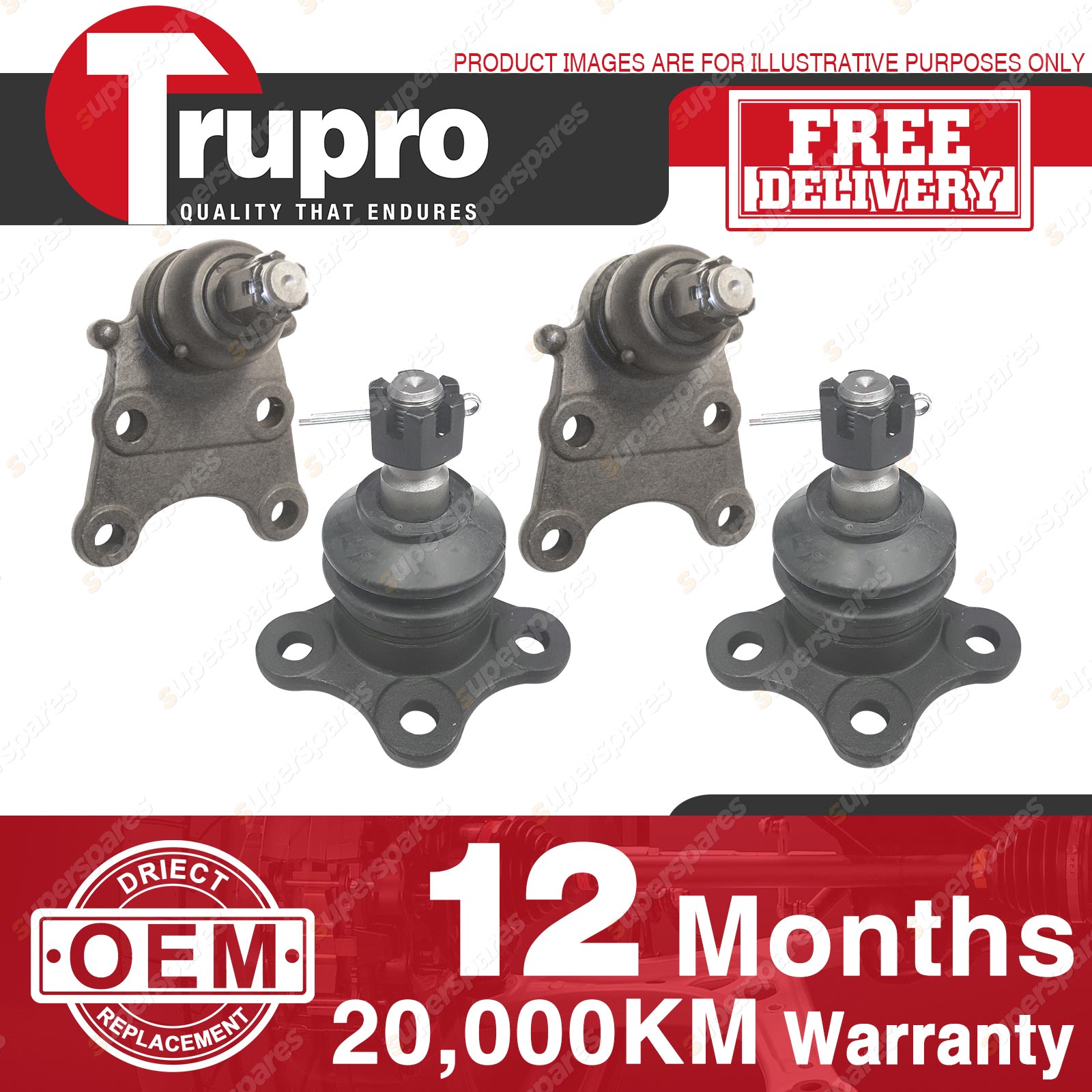 4 Pcs Trupro Lower+upper Ball Joints