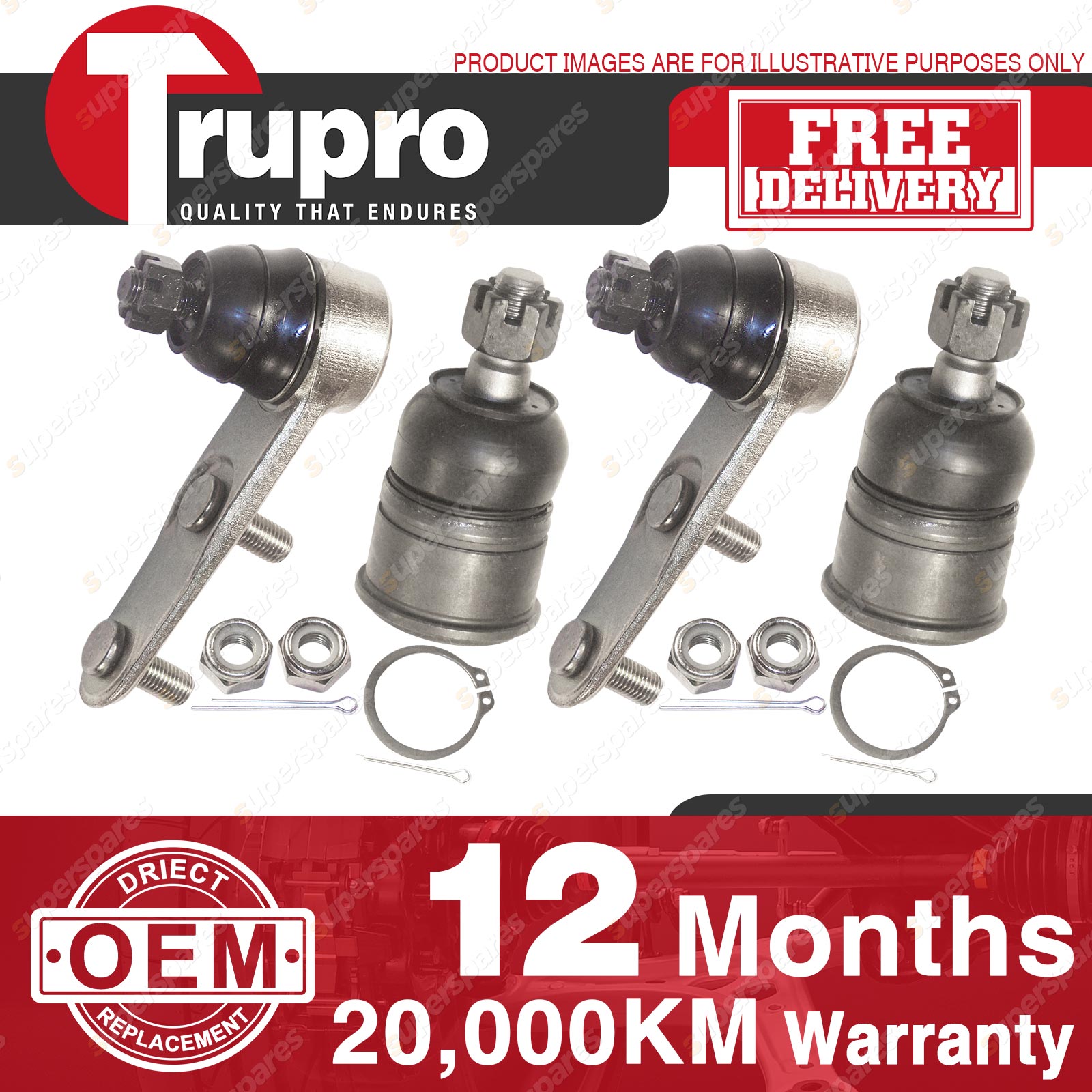 4 Pcs Trupro Lower+upper Ball Joints