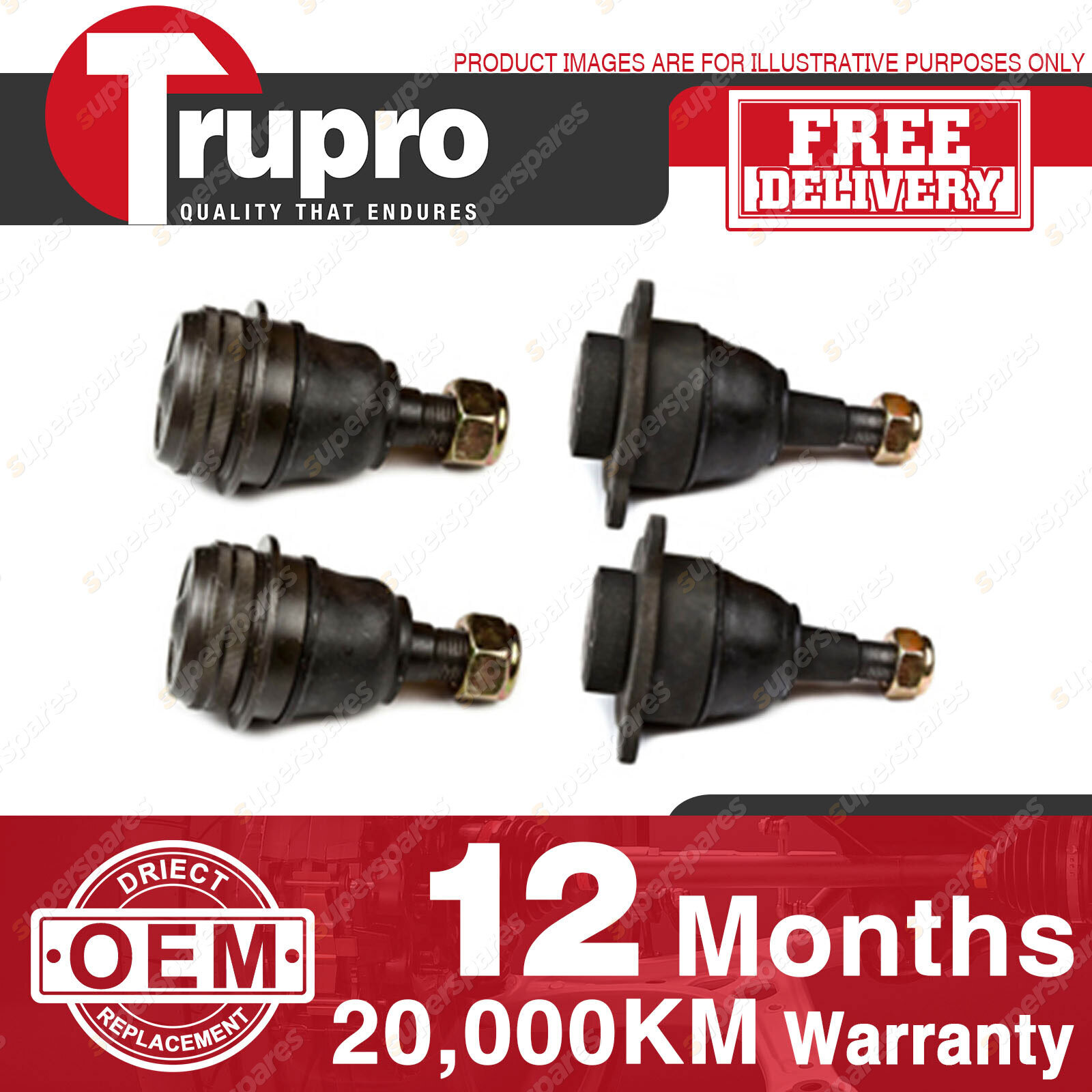 4 Pcs Trupro Lower+upper Ball Joints