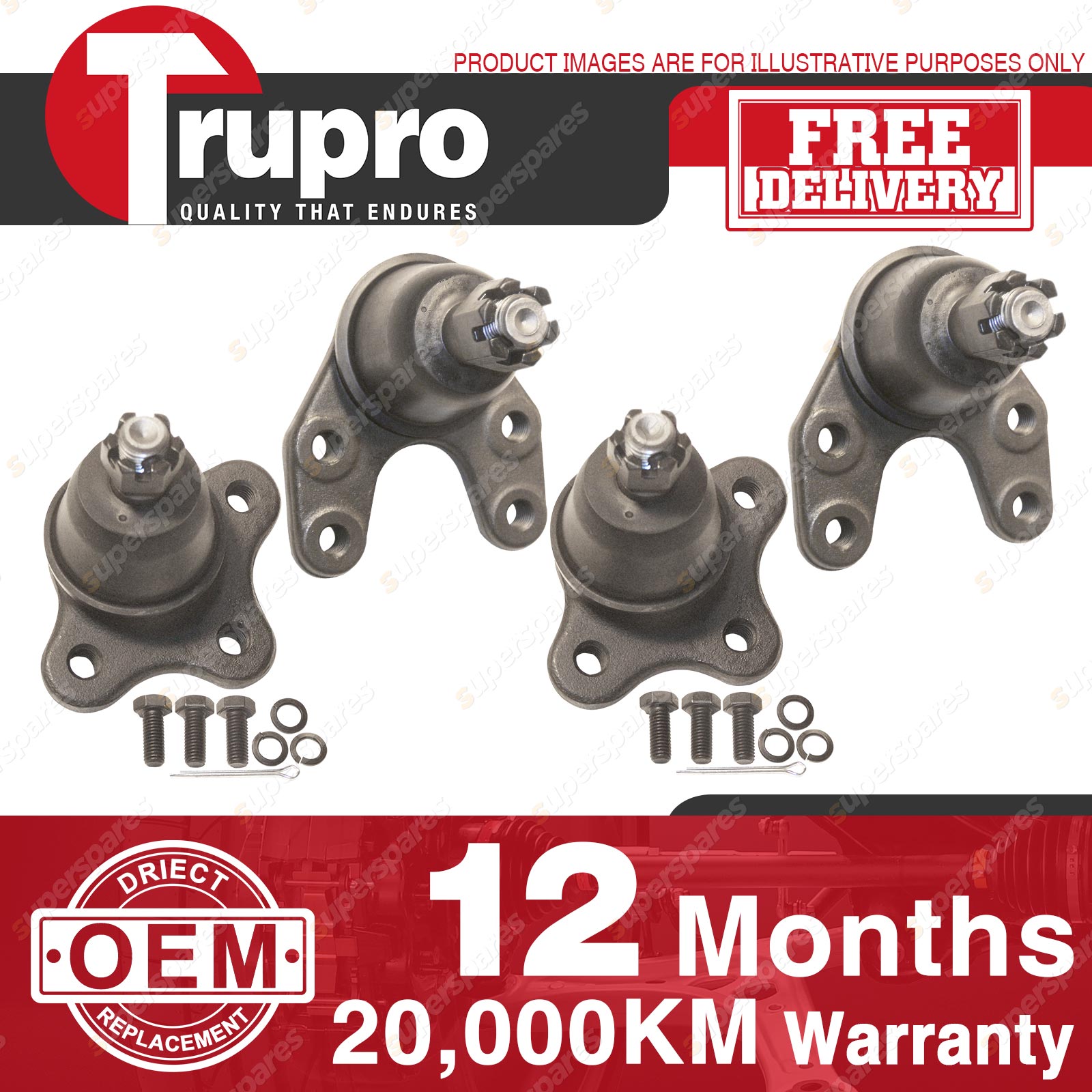 4 Pcs Trupro Lower+upper Ball Joints