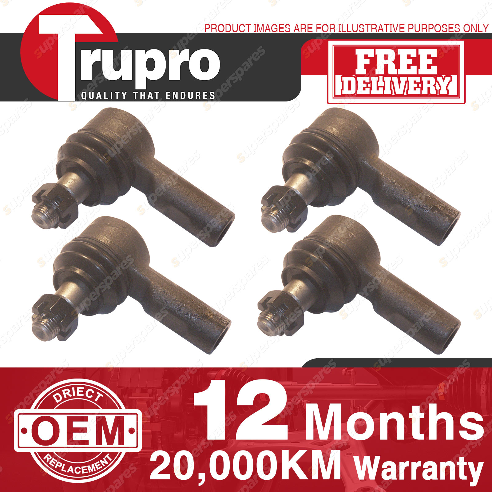 4 Pcs Trupro Outer Inner Tie Rod Ends