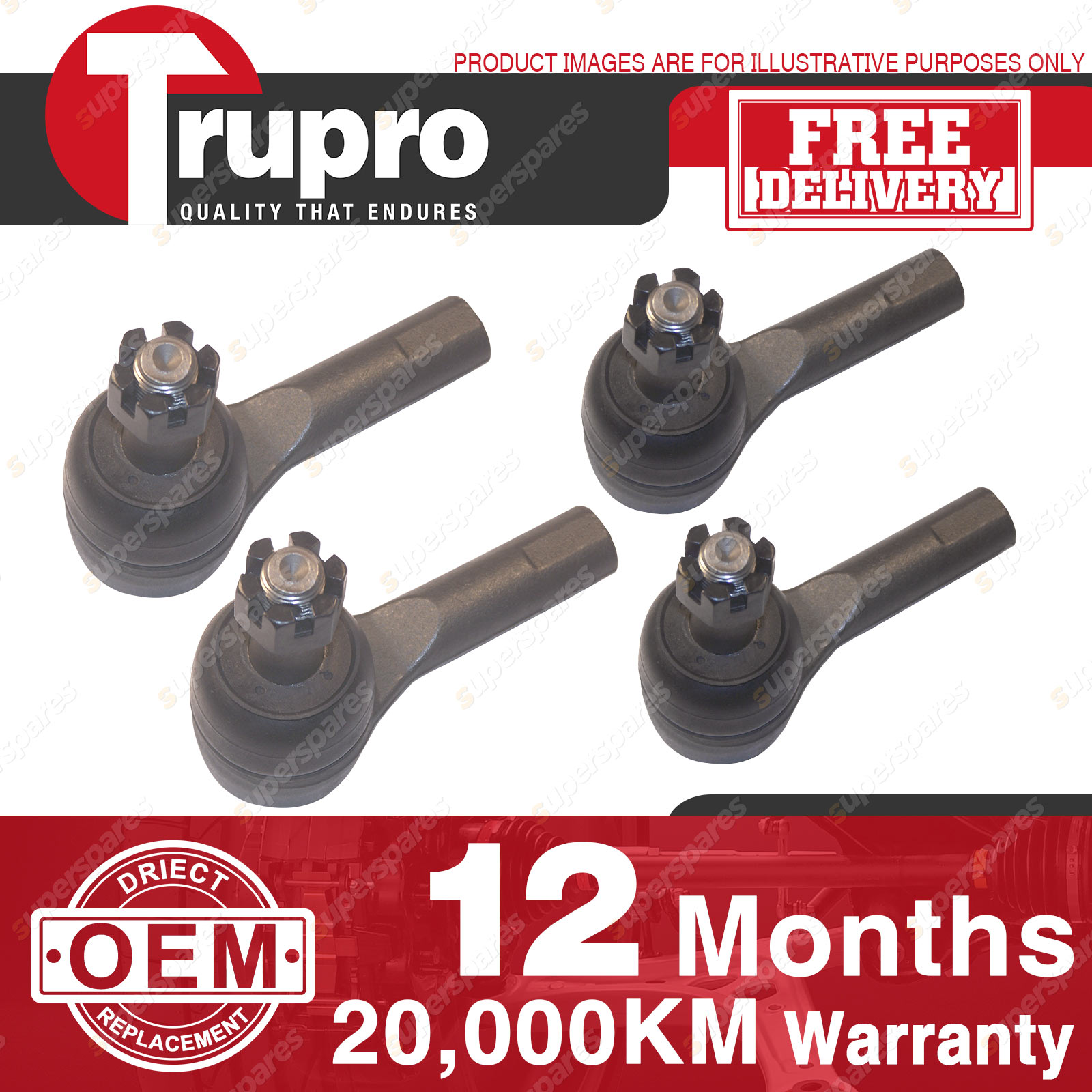 4 Pcs Trupro Outer Inner Tie Rod Ends