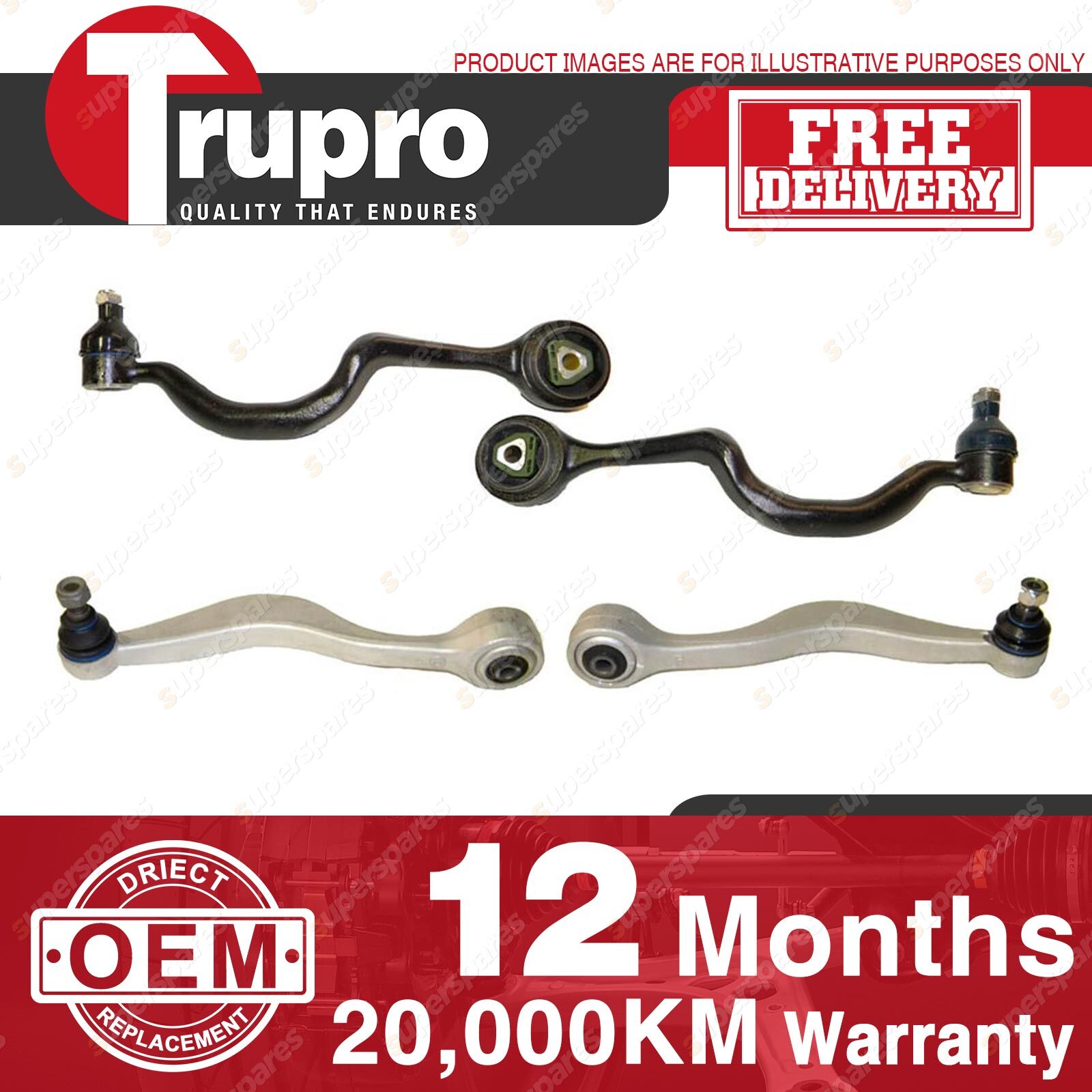4 Pcs Trupro Lower+Upper Control Arms With Ball Joint