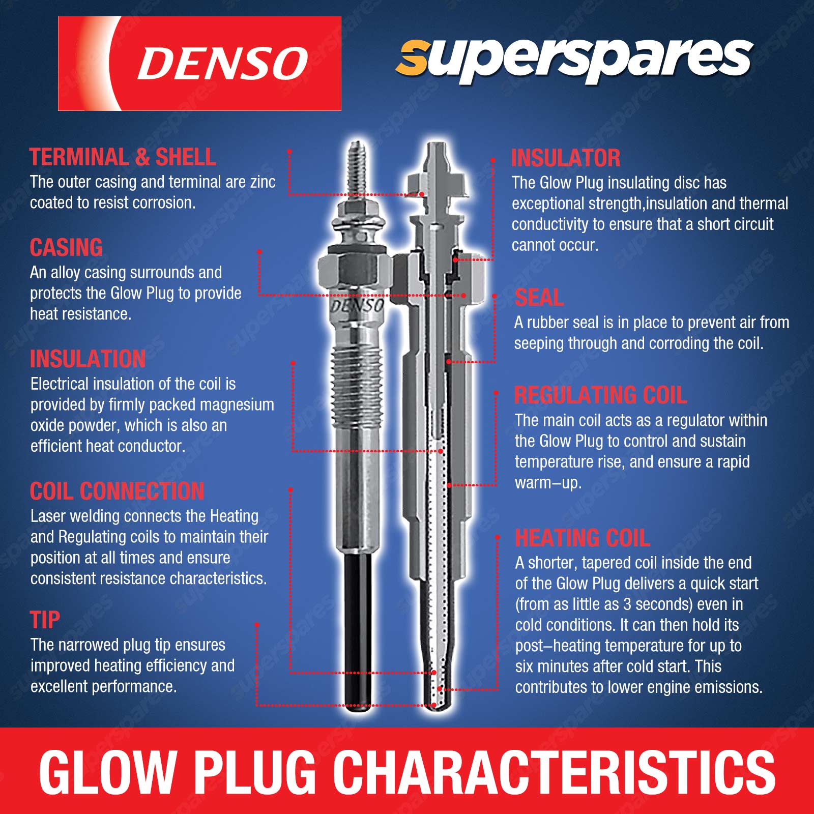 Note: eBay's compatibility table is not accurate in some cases. Please refer to the following information we have provided for you. Contents : 4 x Denso Glow Plugs Parameter : Voltage(Volts): 11 Suit : |