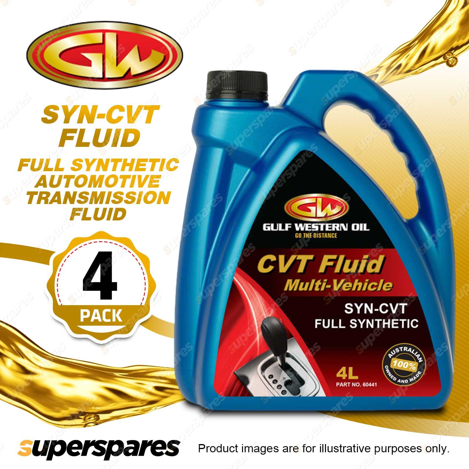 Contents : 4 x Gulf Western SYN-CVT Full Synthetic Automotive Transmission Fluid - 4L