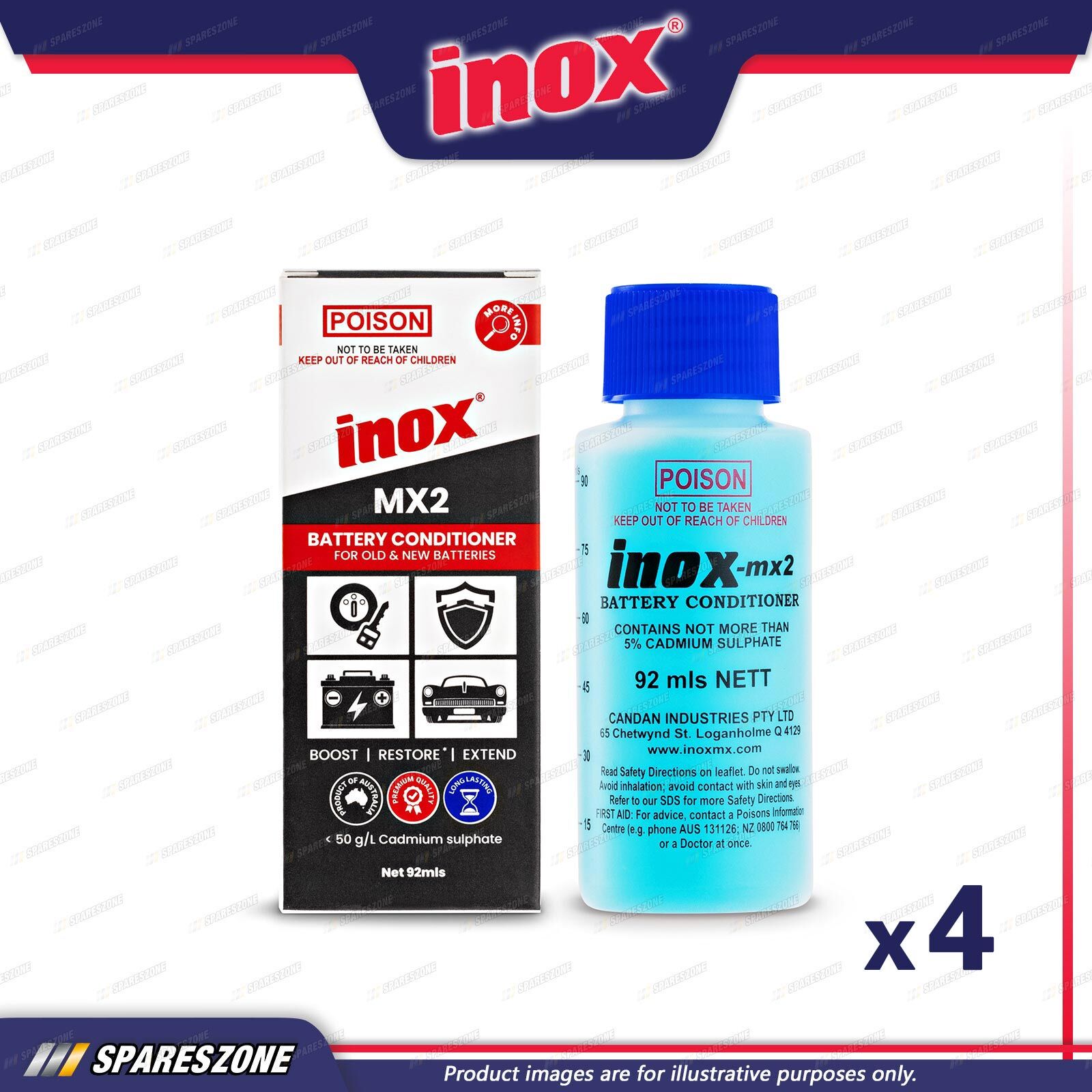 Contents : 4 x Inox MX2 Battery Conditioner 92ML