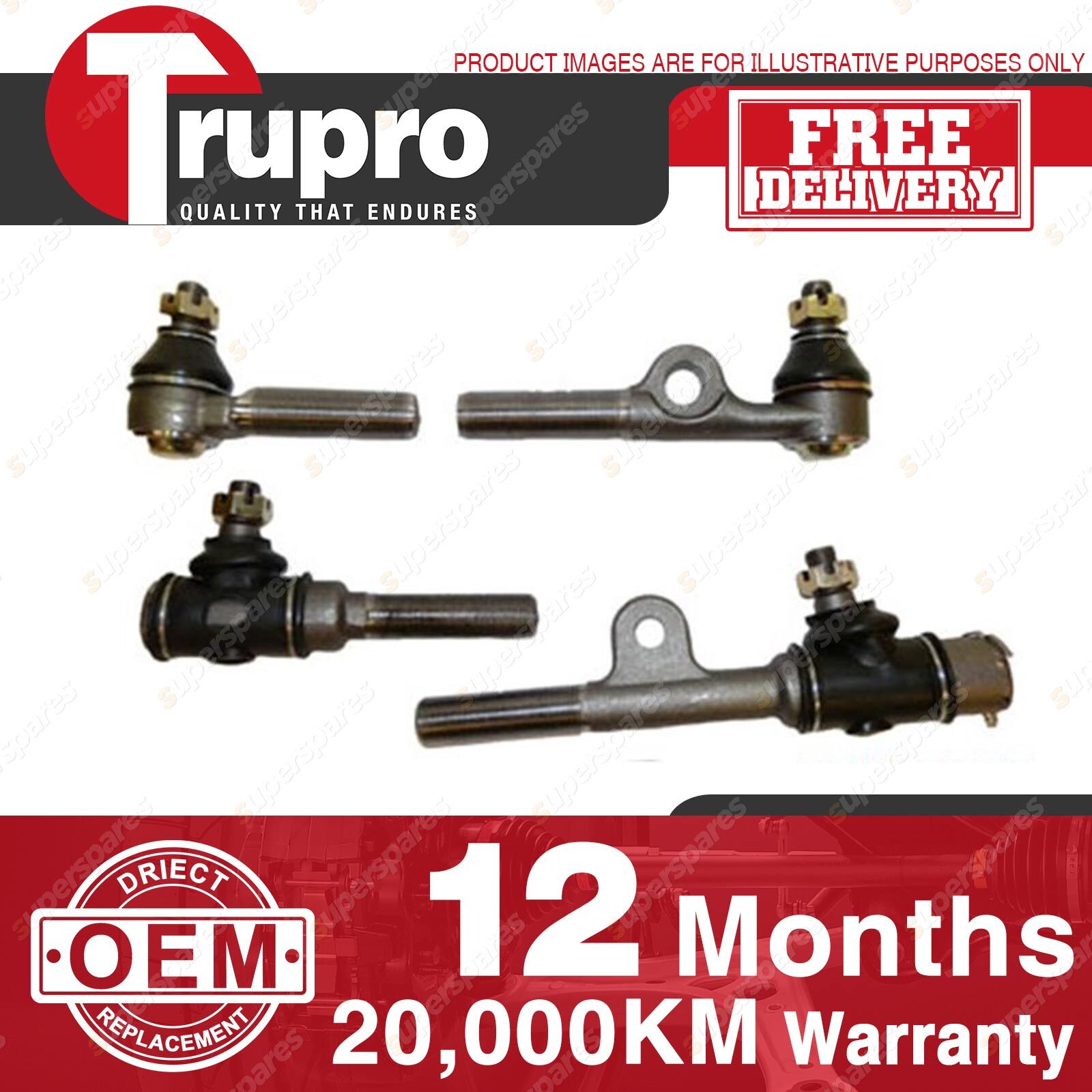 4 Pcs Trupro Inner + Outer Tie Rod Ends