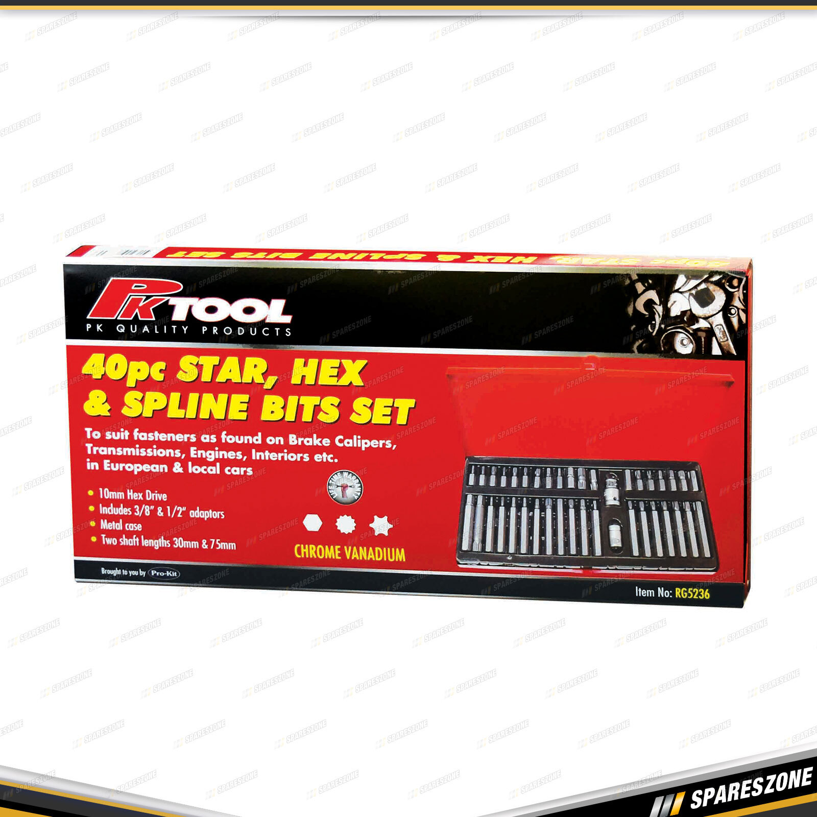 Contents : 40 Pcs of PK Tool 10mm Hex & Star & Spline Set