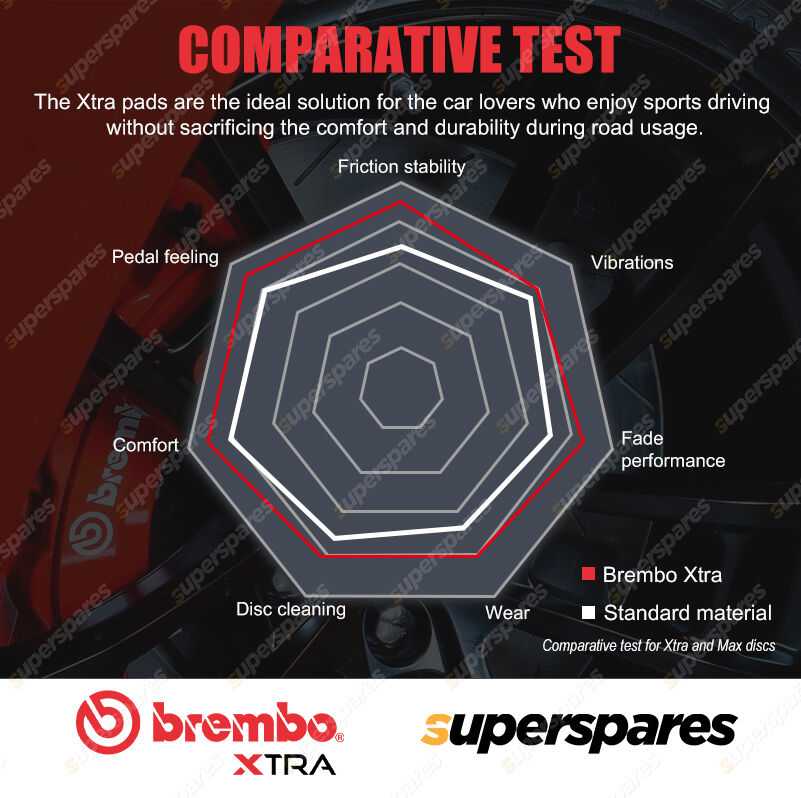 Brembo's Xtra pads have been developed to enhance the advantages offered by Brembo's drilled and slotted discs. They are the ideal solution for the car lovers who enjoy sports driving without sacrificing the comfort and durability during road usage.